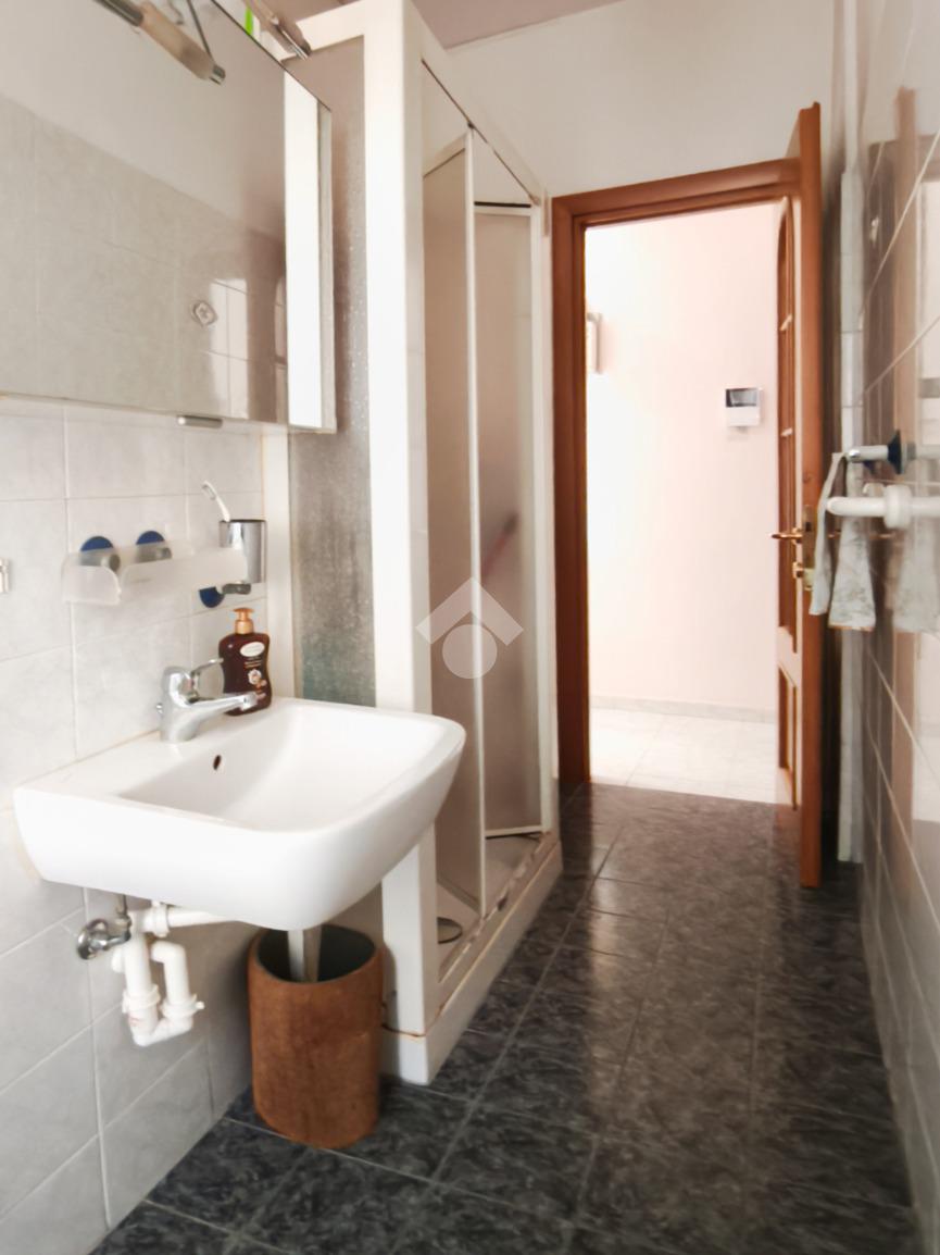 L’ampia camera matrimoniale offre spazio mentre il bagno finestrato con doccia completa la disposizione, garantendo praticità e comfort.