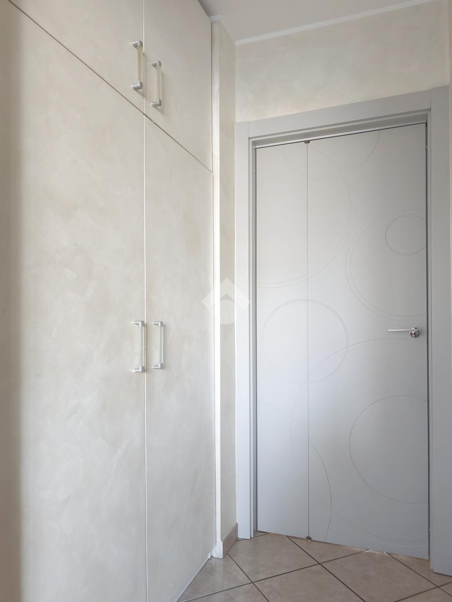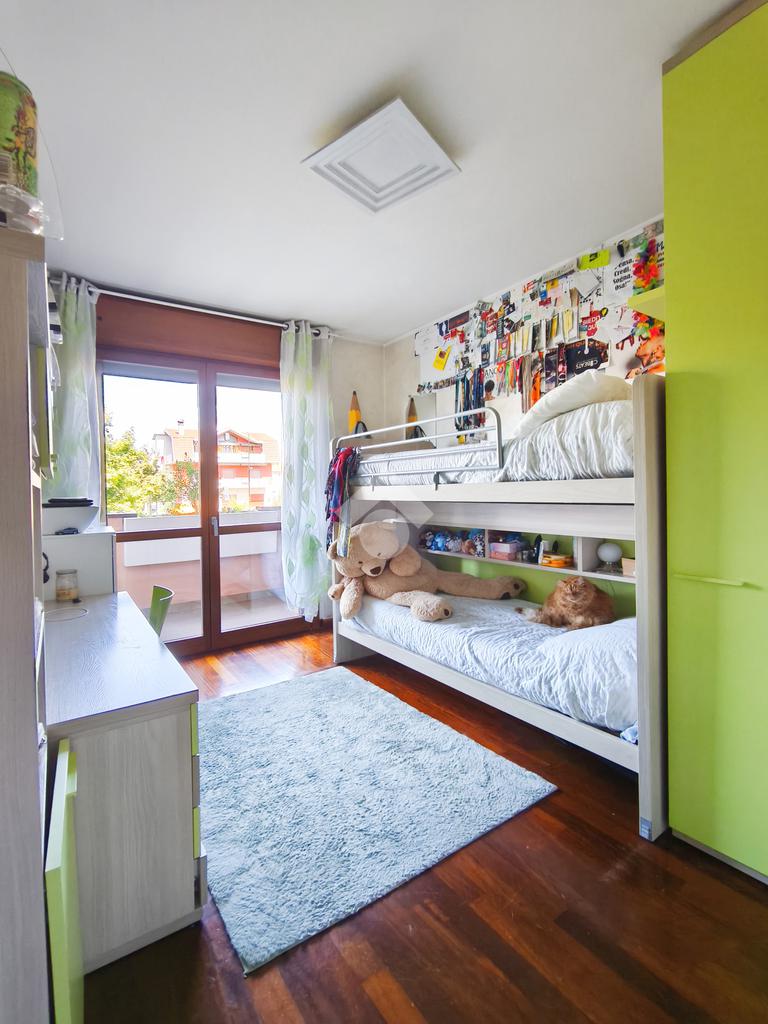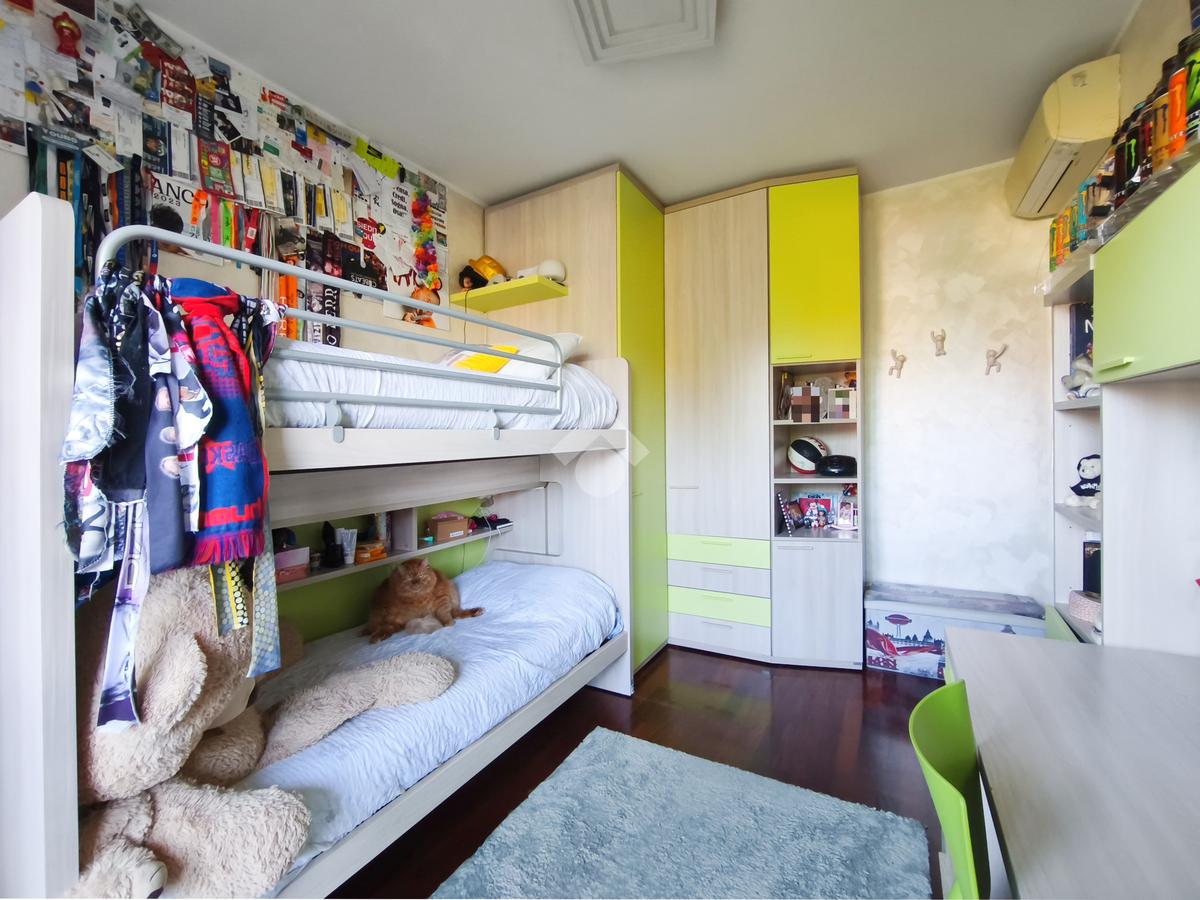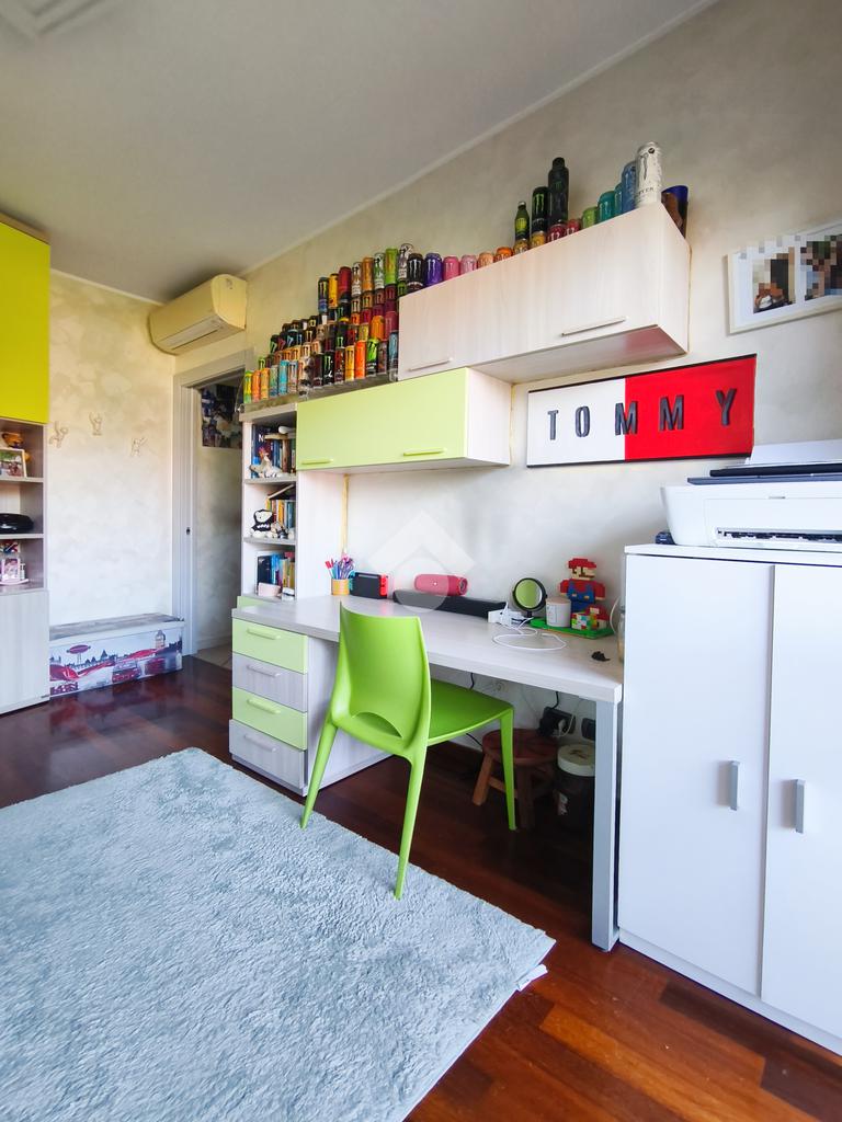 L'appartamento è inoltre dotato di impianto di aria condizionata, impianto di allarme, arredamento completo di cucina e bagni, arredo cameretta, cabina armadio della camera da letto e armadio a muro presente nel disimpegno, offrendo così una soluzione pronta da vivere.