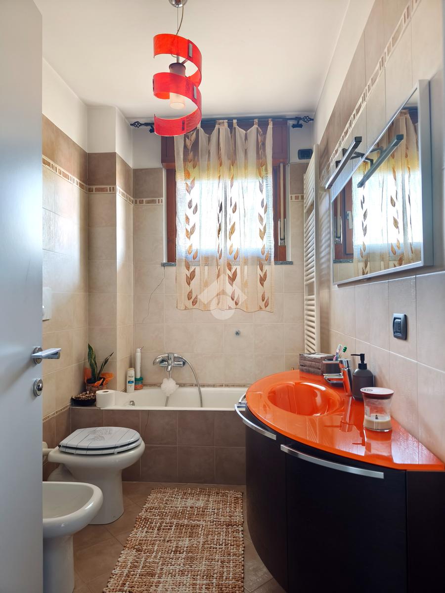 La pavimentazione in ceramica chiara, il parquet nelle camere, gli infissi in legno con doppi vetri e zanzariere, tapparelle elettriche, insieme alle porte interne recentemente rinnovate, donano eleganza e comfort ad ogni ambiente.