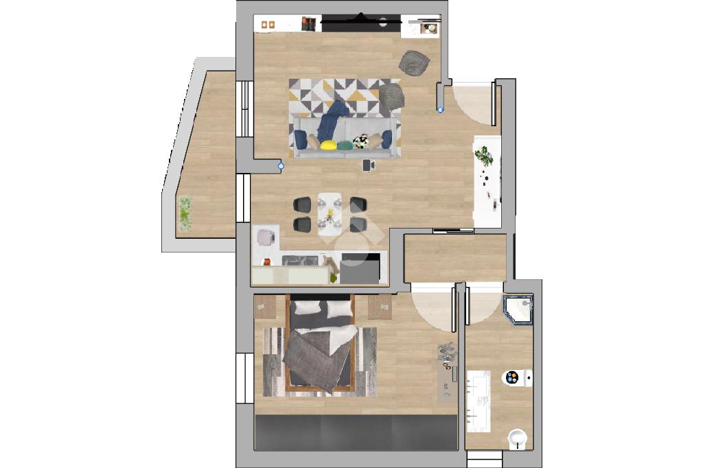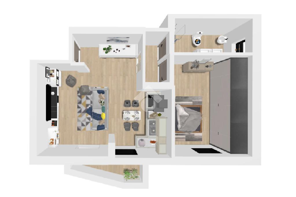 L'appartamento, originariamente concepito con cucina abitabile, è stato oggetto di una completa e accurata ristrutturazione nel 2019, che lo ha trasformato in un moderno e funzionale due locali con cucina a vista.