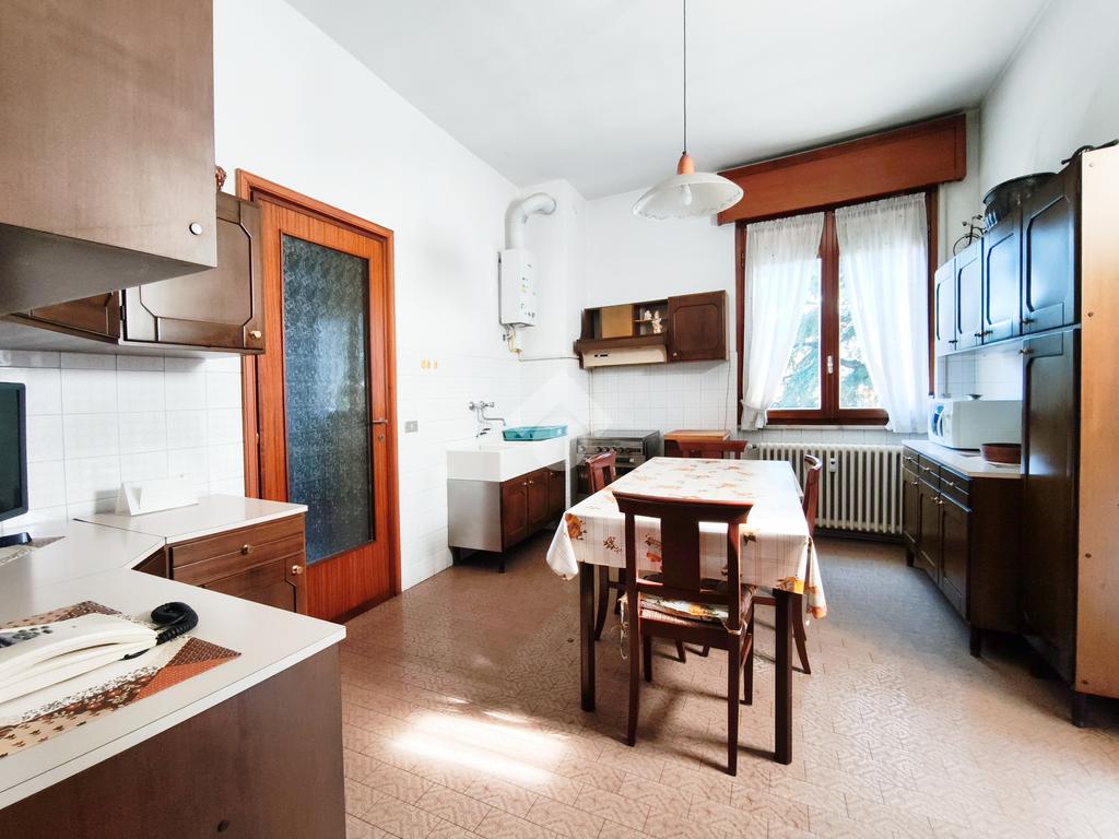 La cucina abitabile, grande e accogliente, è il cuore della casa: affacciata su un balcone ed è ben illuminata grazie anche una ulteriore finestra.