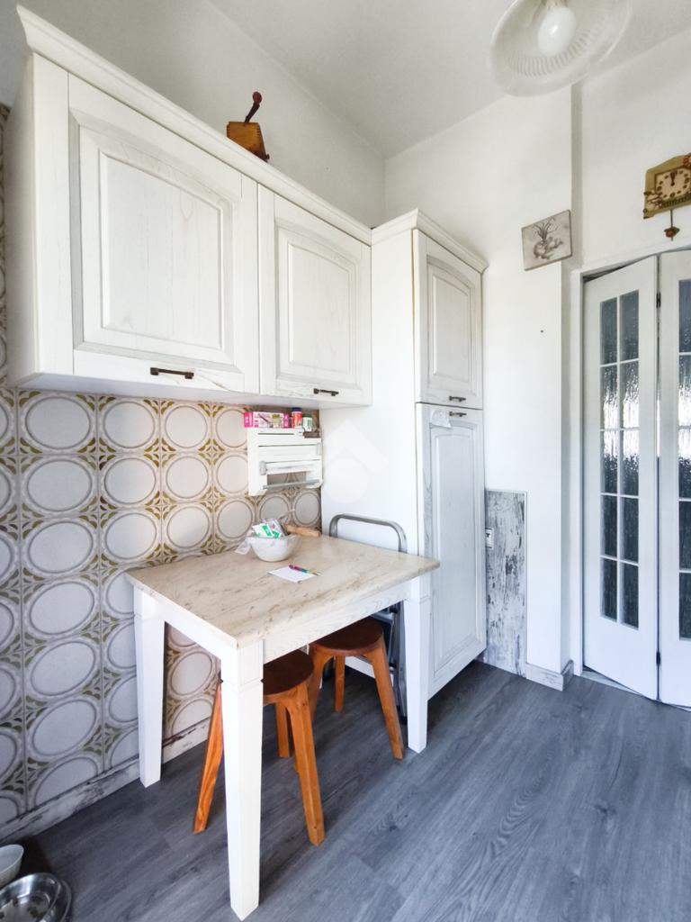 L'ingresso conduce a una funzionale cucina semi abitabile con accesso diretto al primo balcone oltre a un accogliente soggiorno che gode di un secondo balcone.