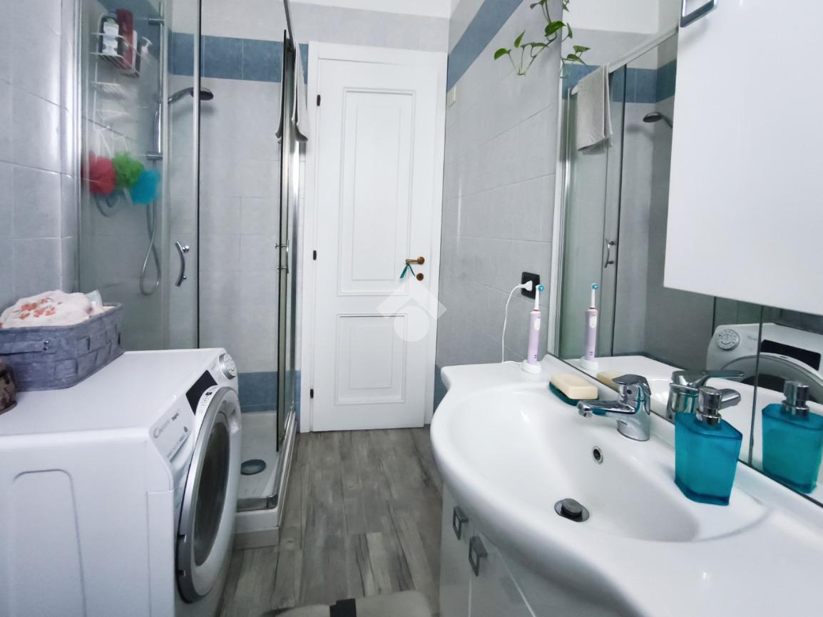 Il bagno, anch’esso rinnovato, è completo di finestra e di un comodo box doccia.