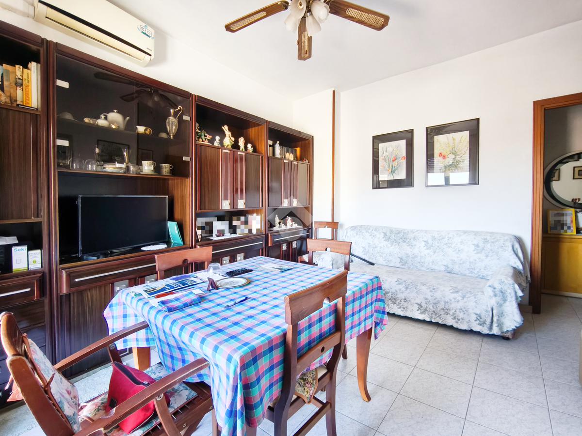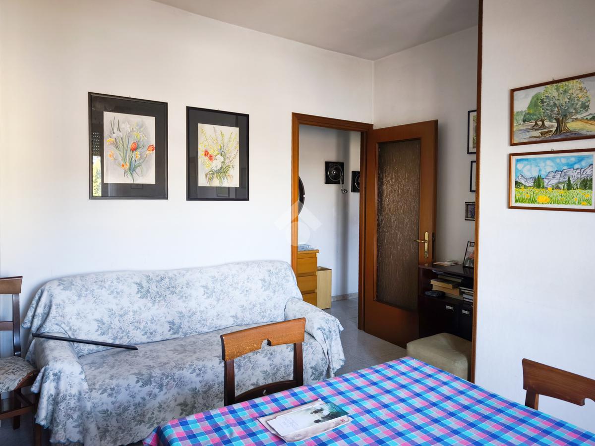 Varcando la soglia, si accede al disimpegno che conduce alla zona giorno, composta da un soggiorno che gode di una naturale luminosità e si affaccia su un balcone.