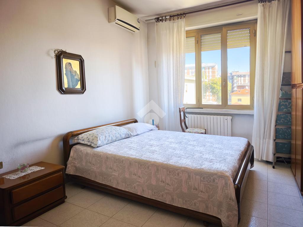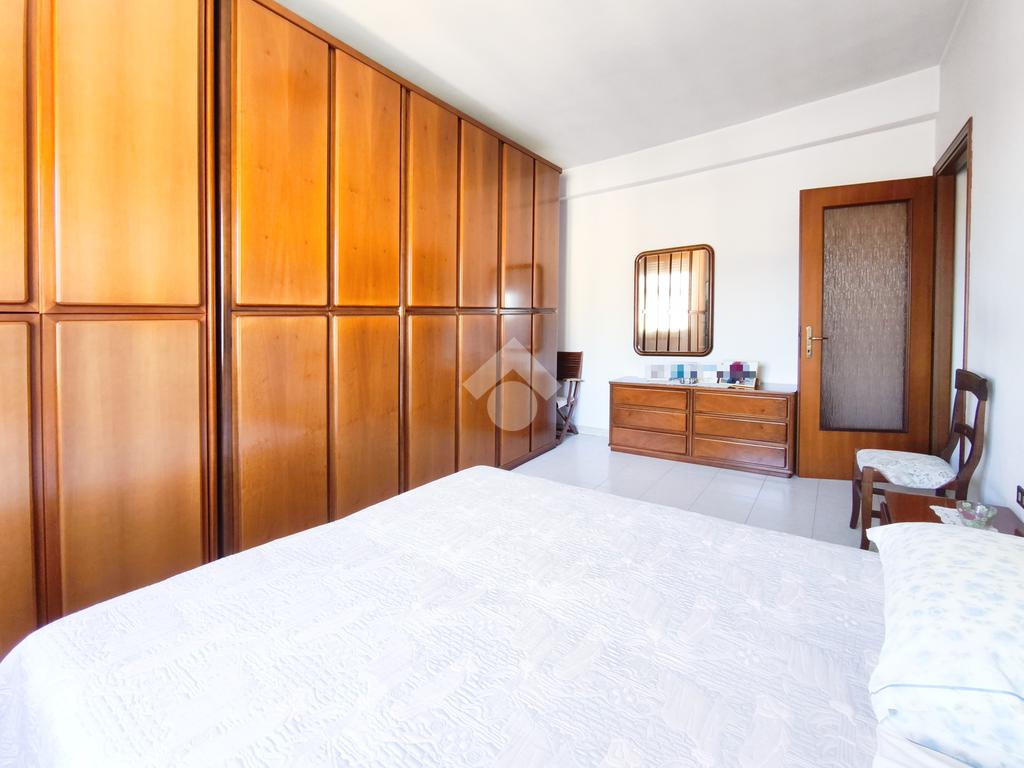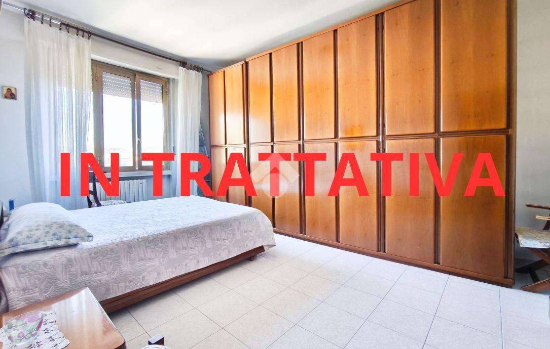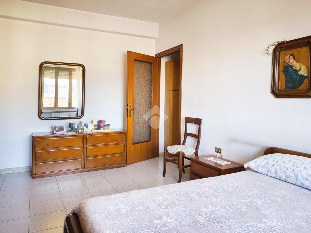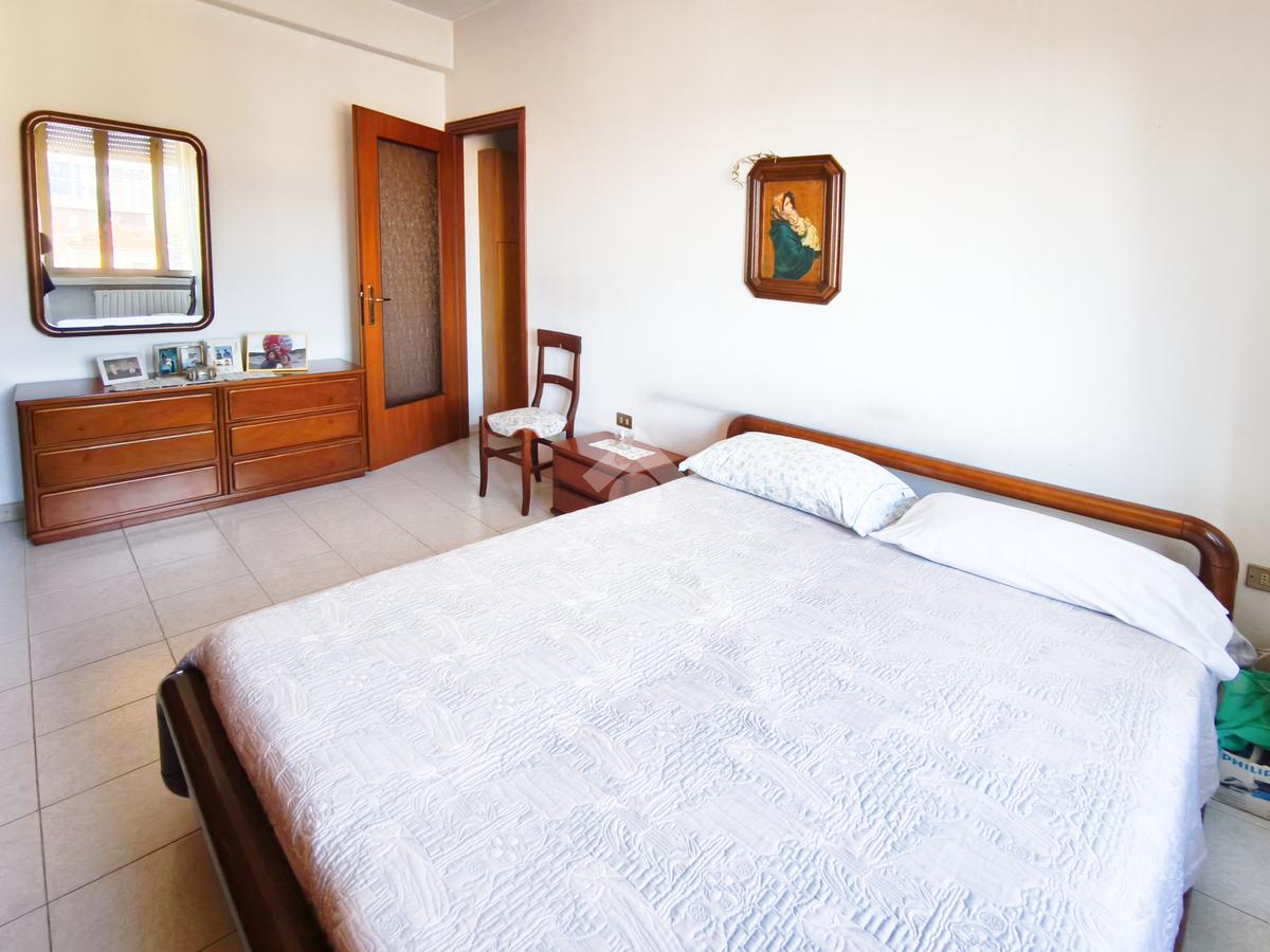 La zona notte è definita da un'ampia camera matrimoniale, uno spazio generoso che può ospitare comodamente arredi completi.