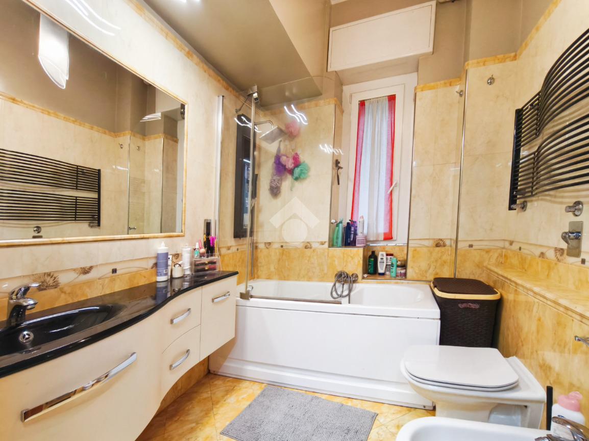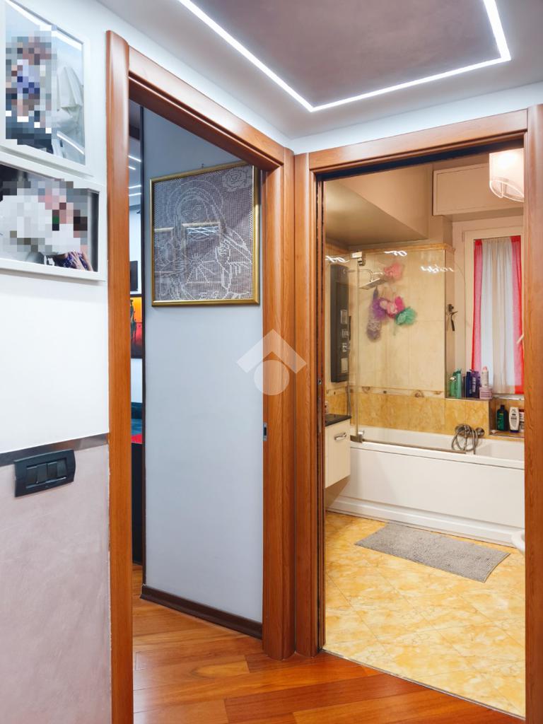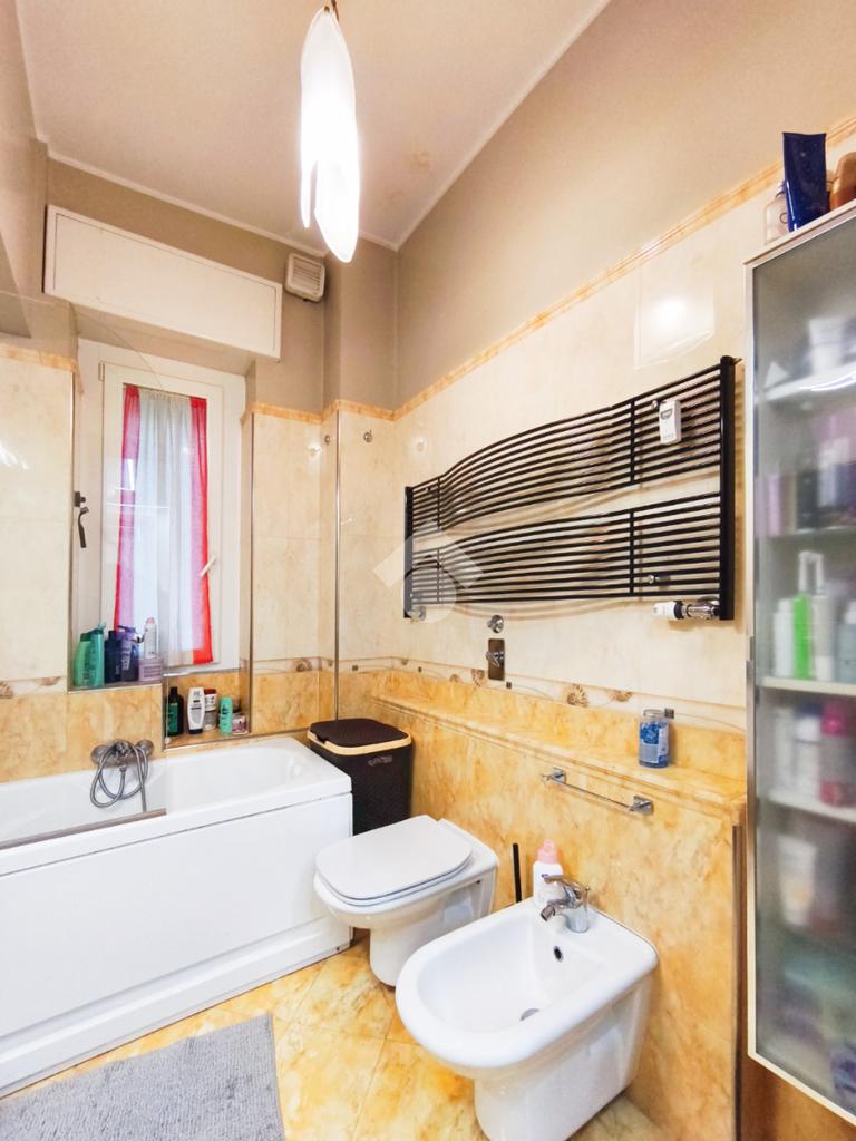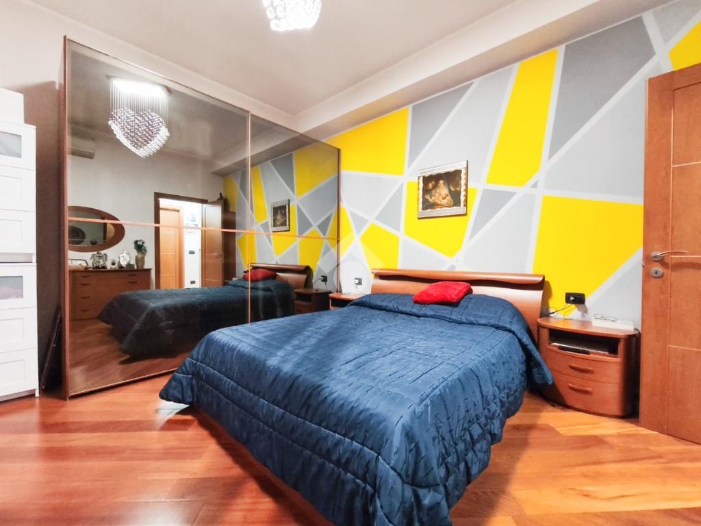La camera matrimoniale si presenta come un'oasi di comfort, resa ancora più funzionale da un ripostiglio interno privato, mentre il bagno finestrato mantiene un sapore classico grazie alla presenza della vasca da bagno.