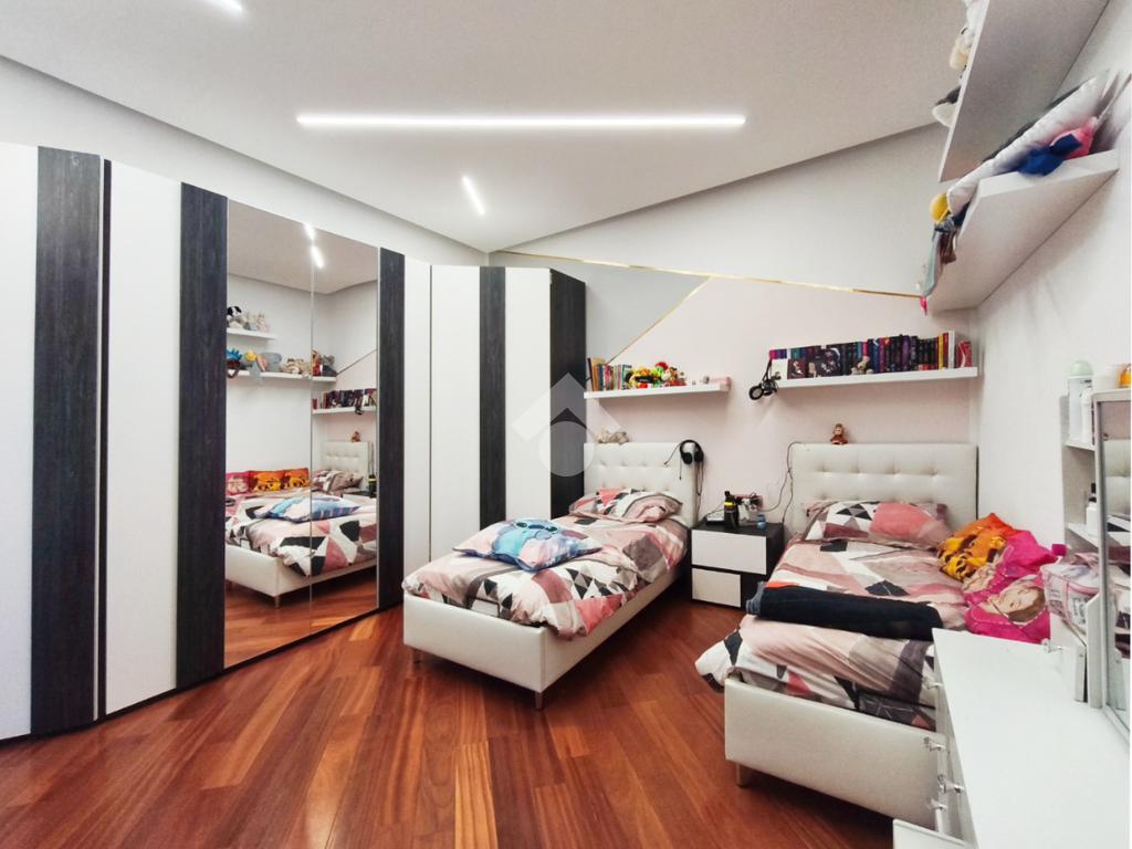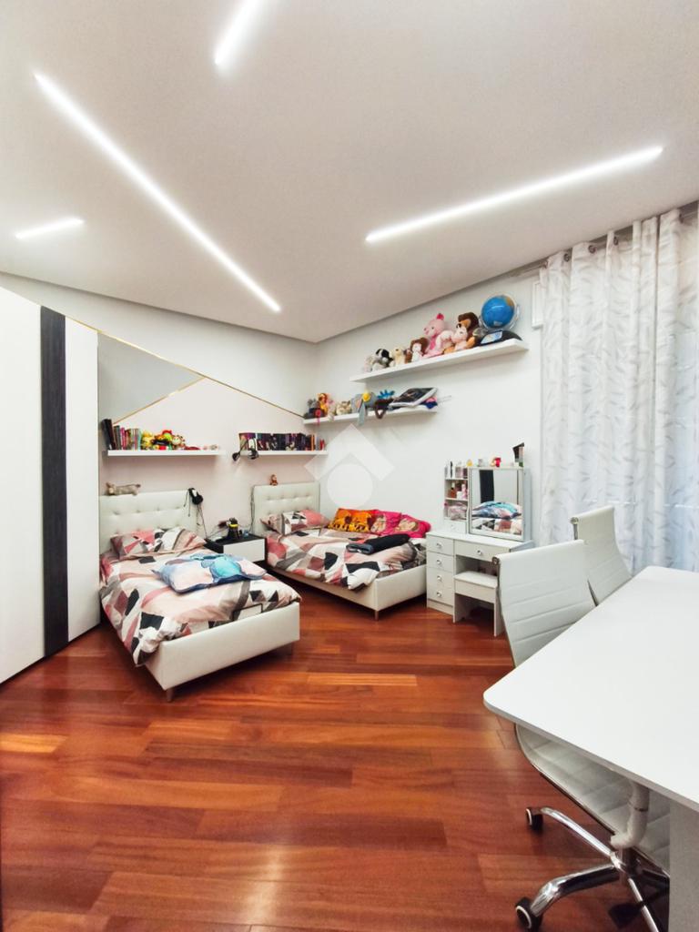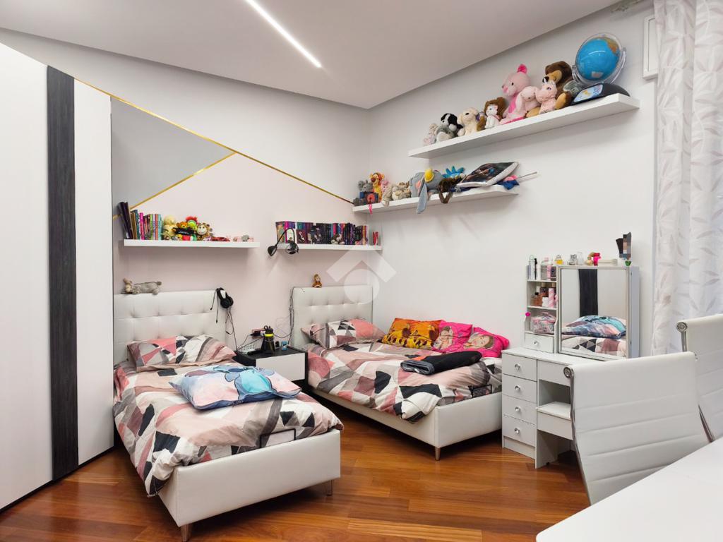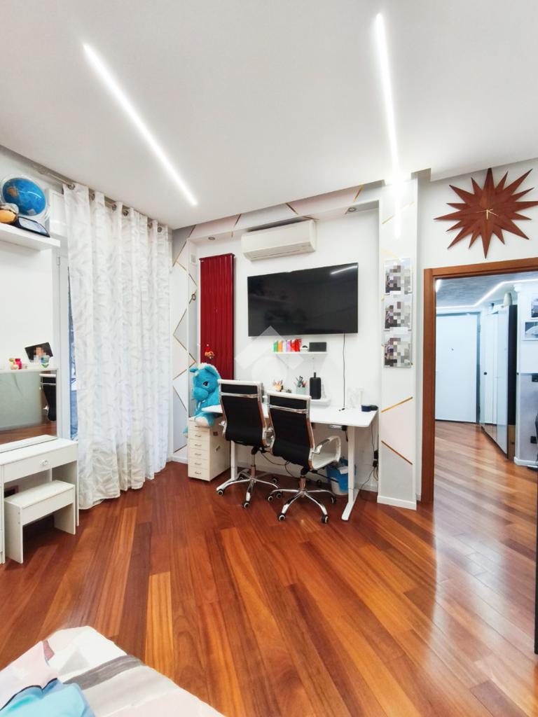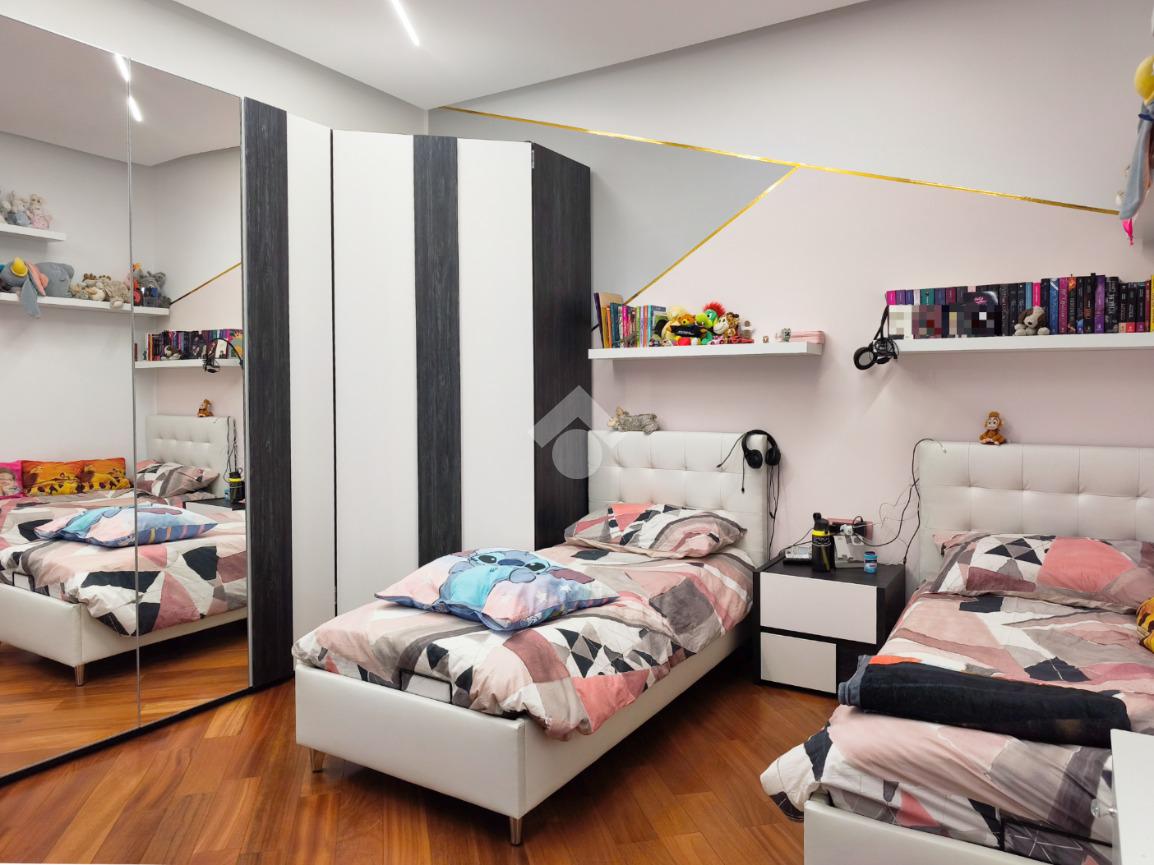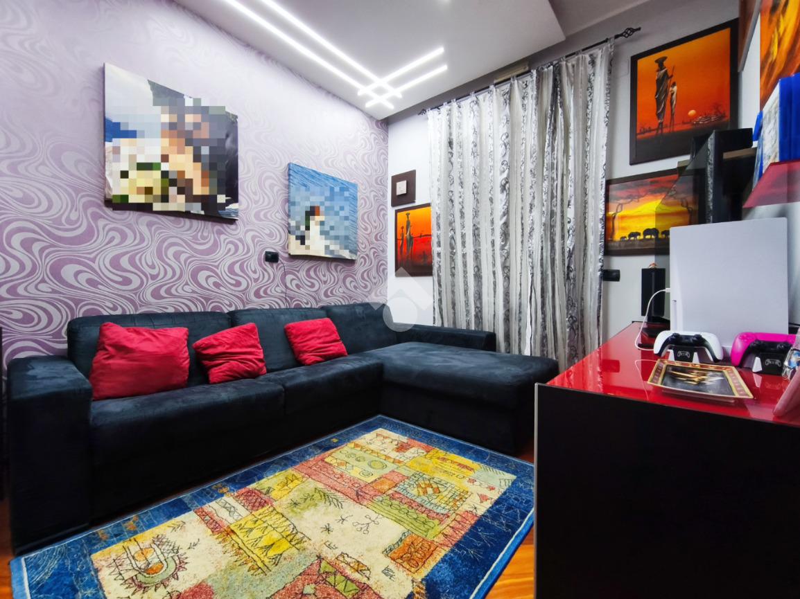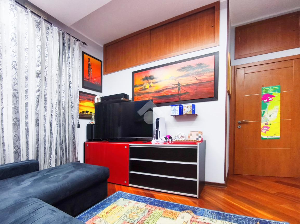 L'attuale disposizione degli interni vede il soggiorno e la cameretta invertiti per offrire una superficie più ampia ai figli, ma la flessibilità degli spazi permette di ripristinare la configurazione originale con estrema semplicità, assecondando le esigenze di ogni famiglia.