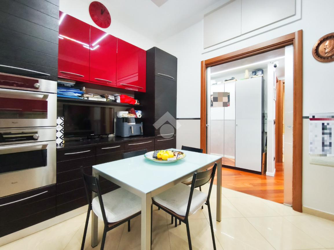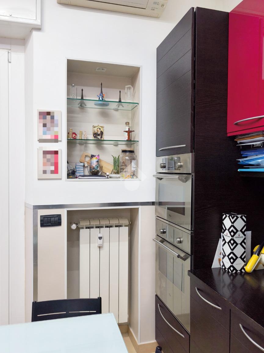 La zona giorno colpisce subito per la cucina abitabile, uno spazio generoso e dalla pianta regolare che invita alla convivialità, arricchito dal pratico accesso diretto al balcone.