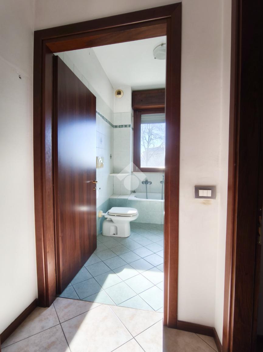 Un pratico disimpegno ci conduce alla zona notte, dove troviamo un bagno finestrato dotato di vasca e una camera da letto accogliente, impreziosita dal calore del parquet.