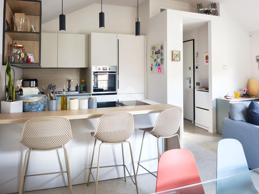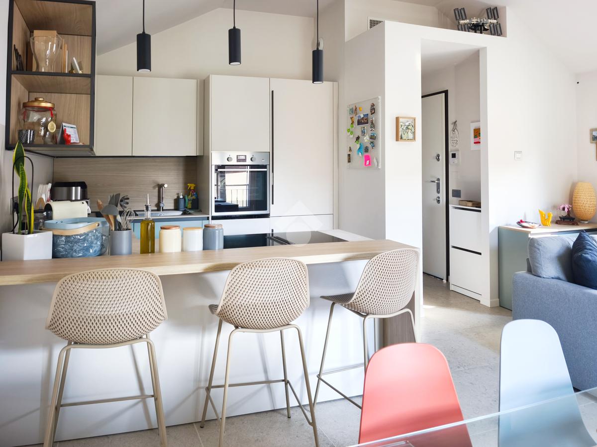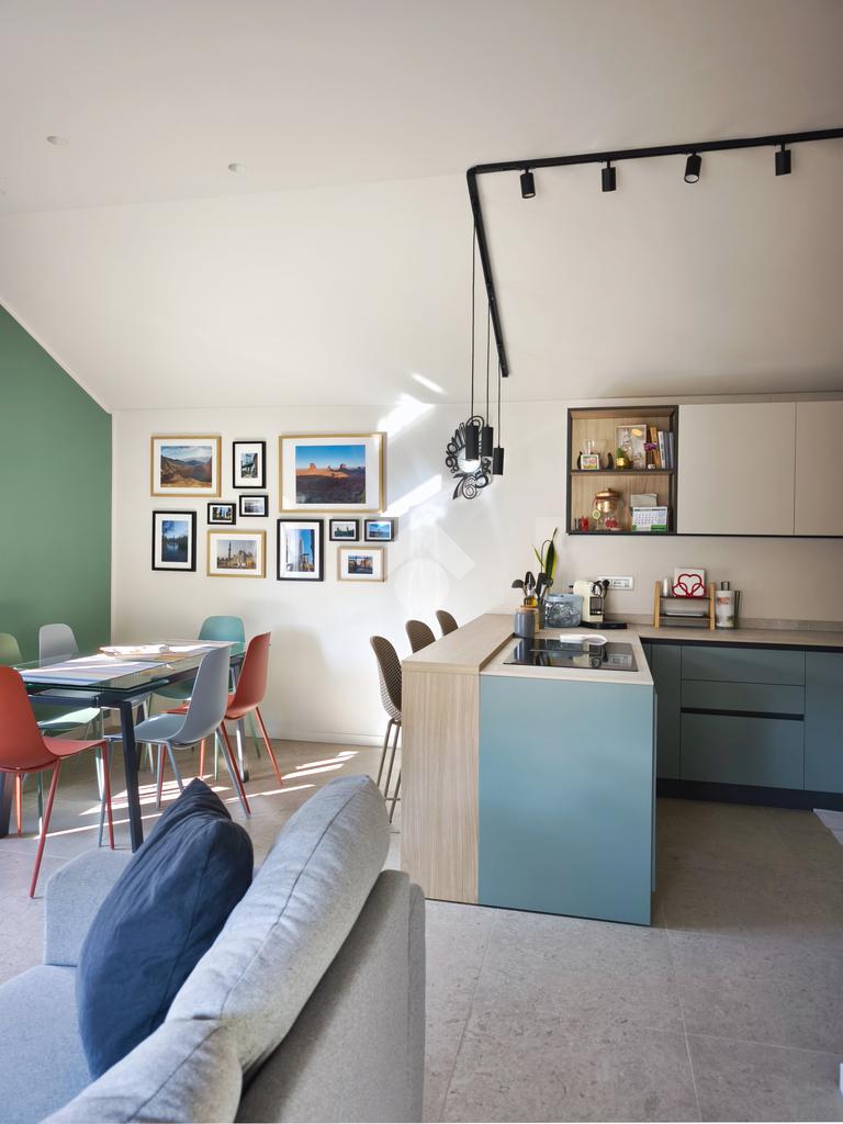Varcata la soglia, sarai accolto da un luminoso soggiorno con cucina a vista, uno spazio scenografico dove la luce naturale domina grazie alle ampie finestre e ai suggestivi lucernari. La zona notte offre due camere da letto accoglienti e doppi servizi.