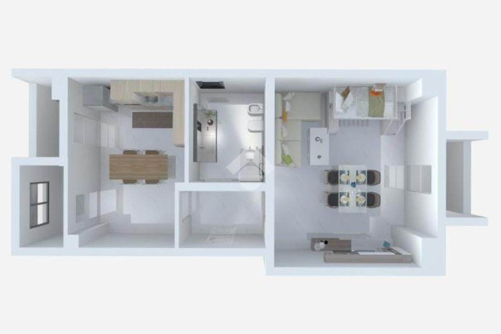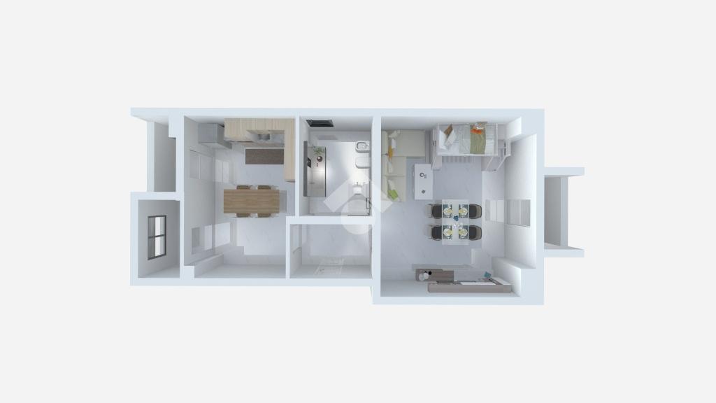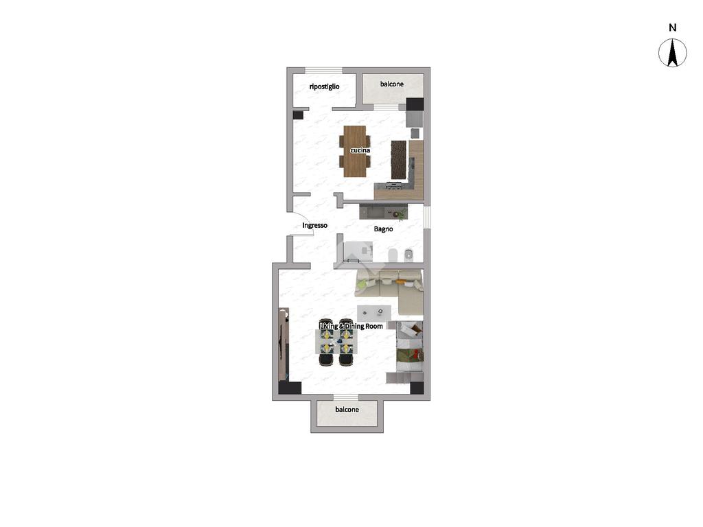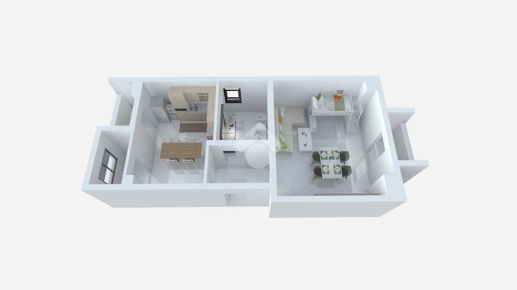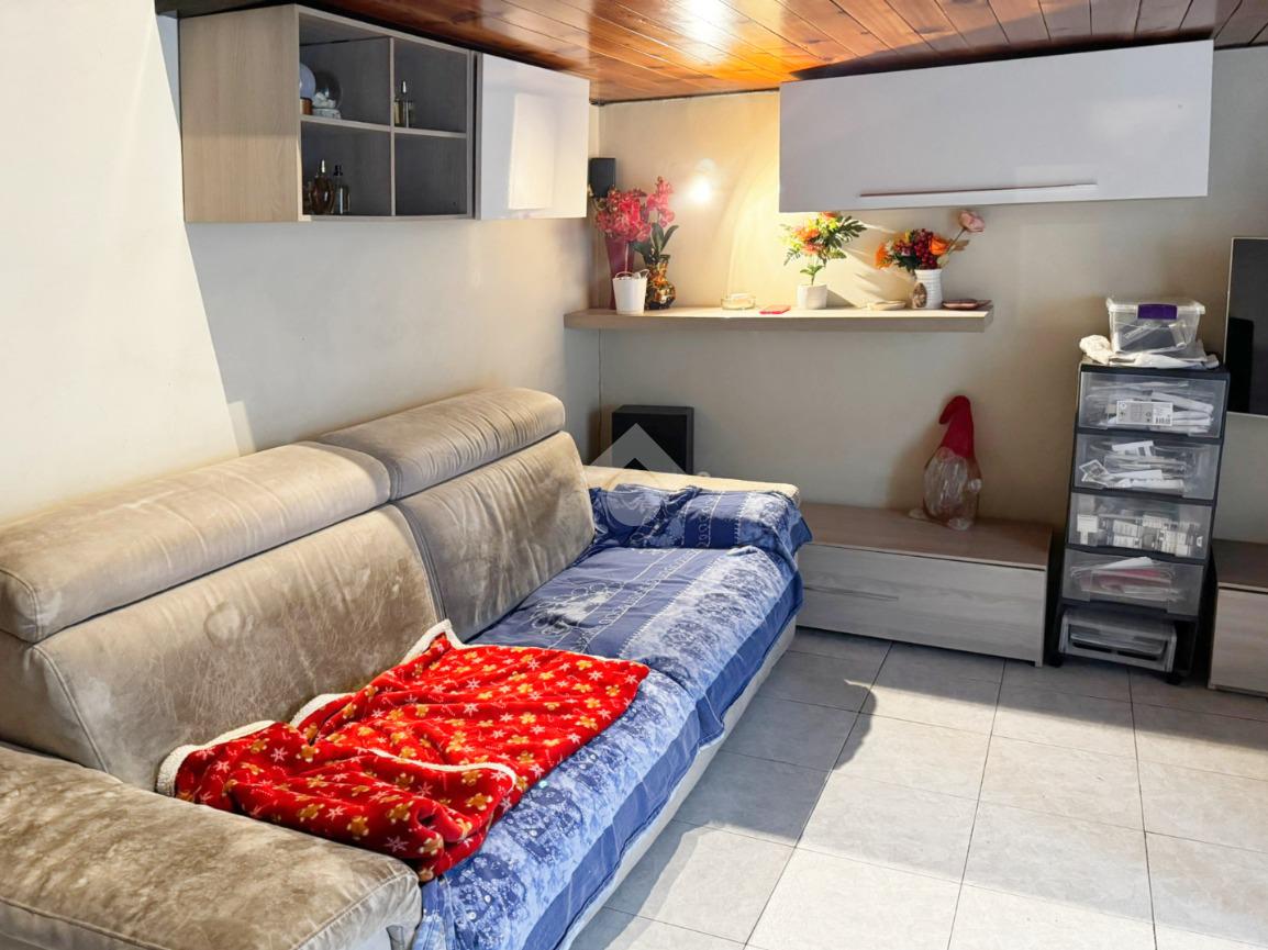 Varcata la soglia, ci si trova in una dimora sapientemente reinterpretata per massimizzare ogni centimetro quadrato. L'originale cucinotto è ora utilizzato come ripostiglio/lavanderia, il soggiorno viene vissuto come cucina abitabile.