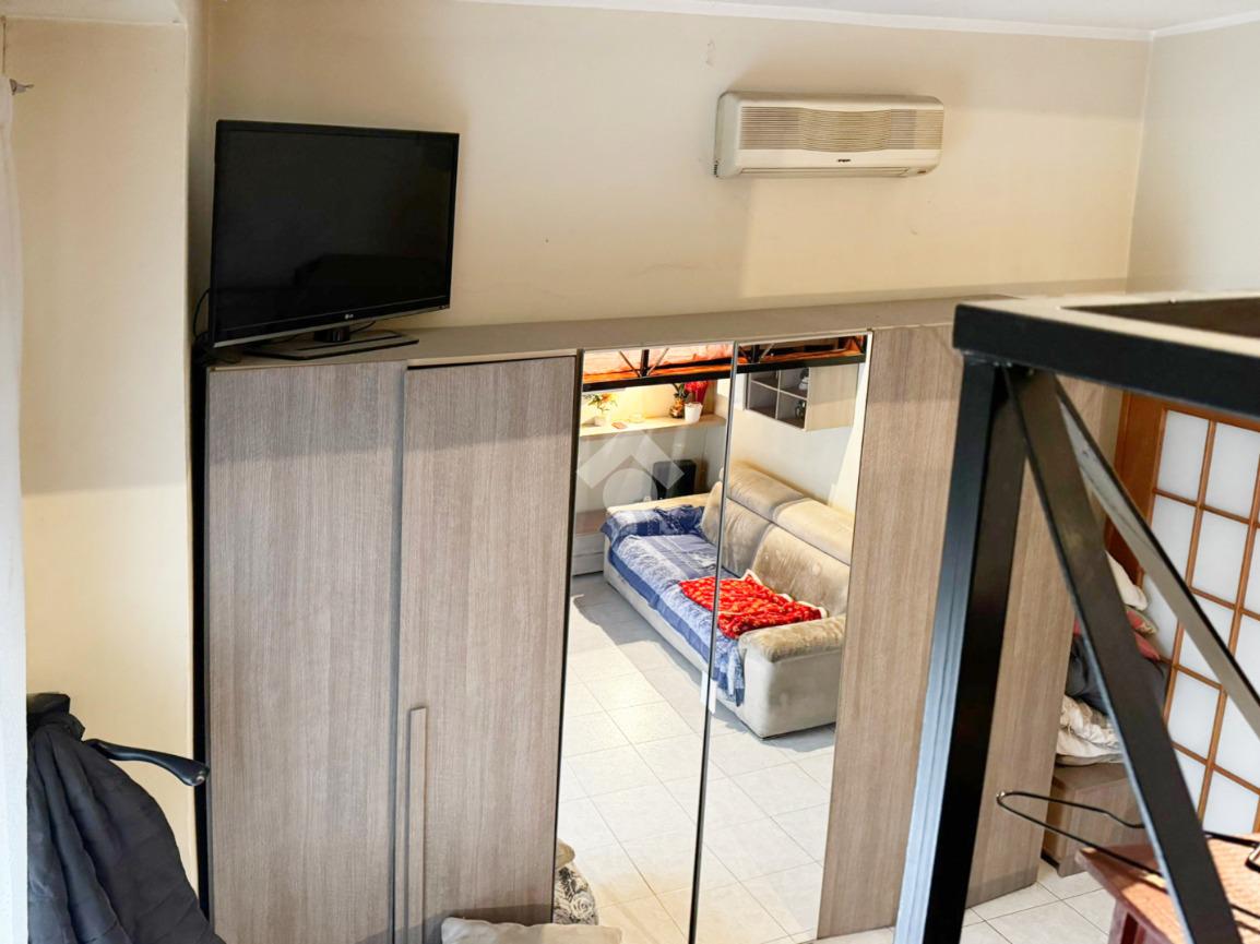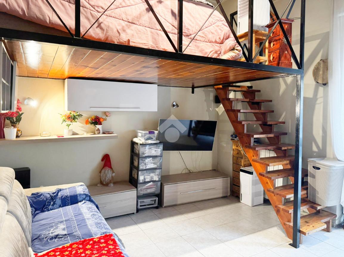 La zona notte è il risultato di un progetto di intelligente: la spaziosa camera da letto ospita oggi un soppalco dove trova spazio la zona notte, lasciando la parte sottostante libera per essere vissuta come un intimo e confortevole soggiorno.