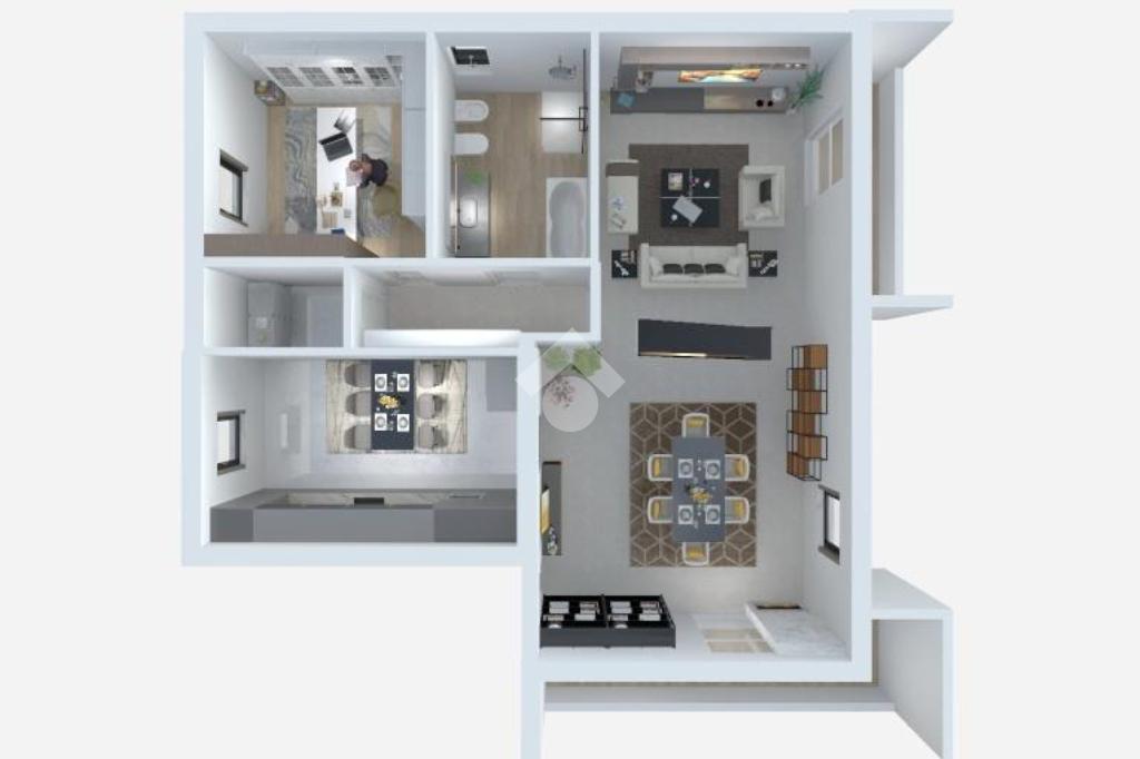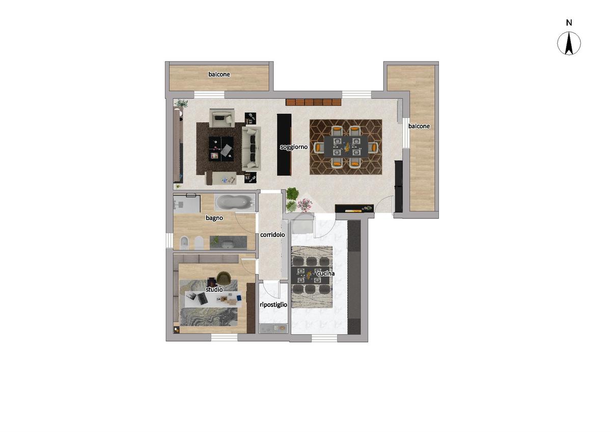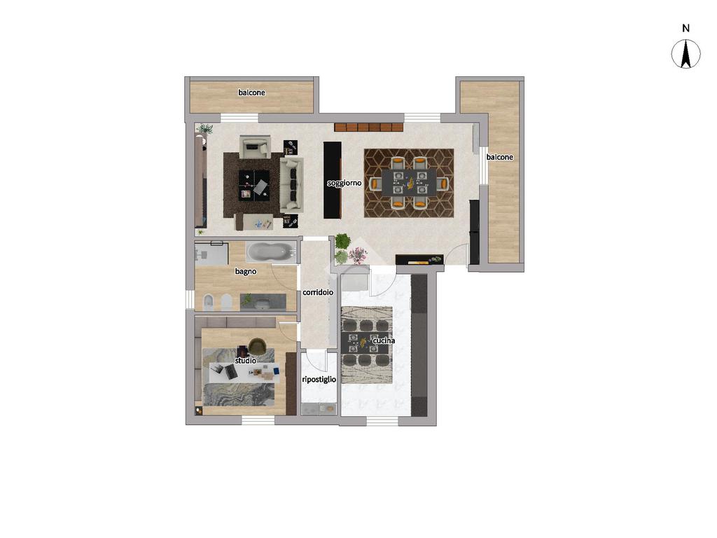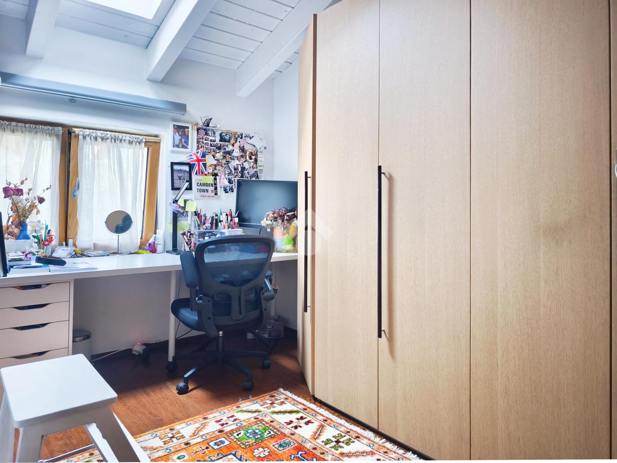 La zona giorno è completata da una cucina abitabile perfetta per le vostre cene, un disimpegno funzionale, un bagno, uno studio (ideale per lo smart working) e un pratico ripostiglio.