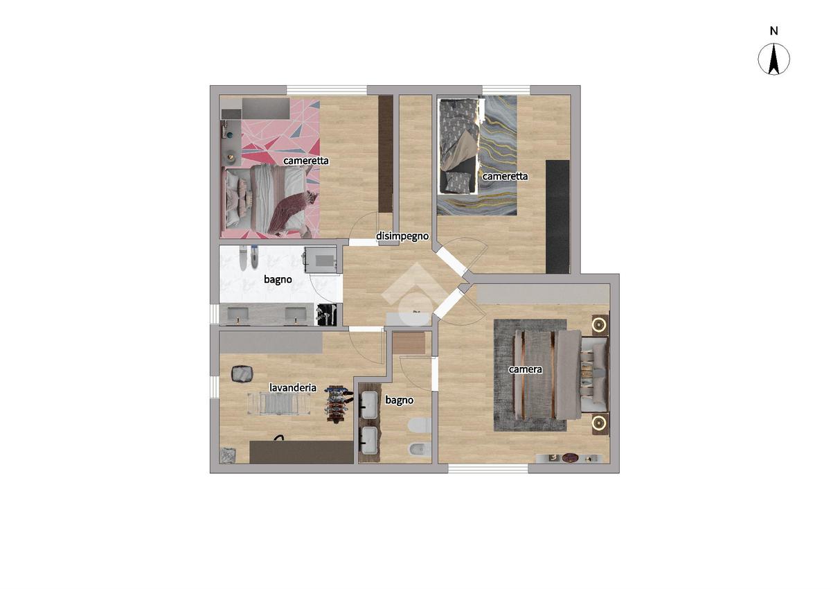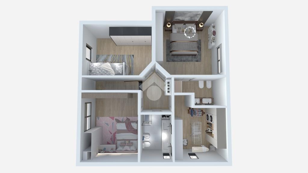 Questo livello ospita anche un secondo bagno di servizio e un ampio locale finestrato dedicato a lavanderia, per una gestione domestica impeccabile.