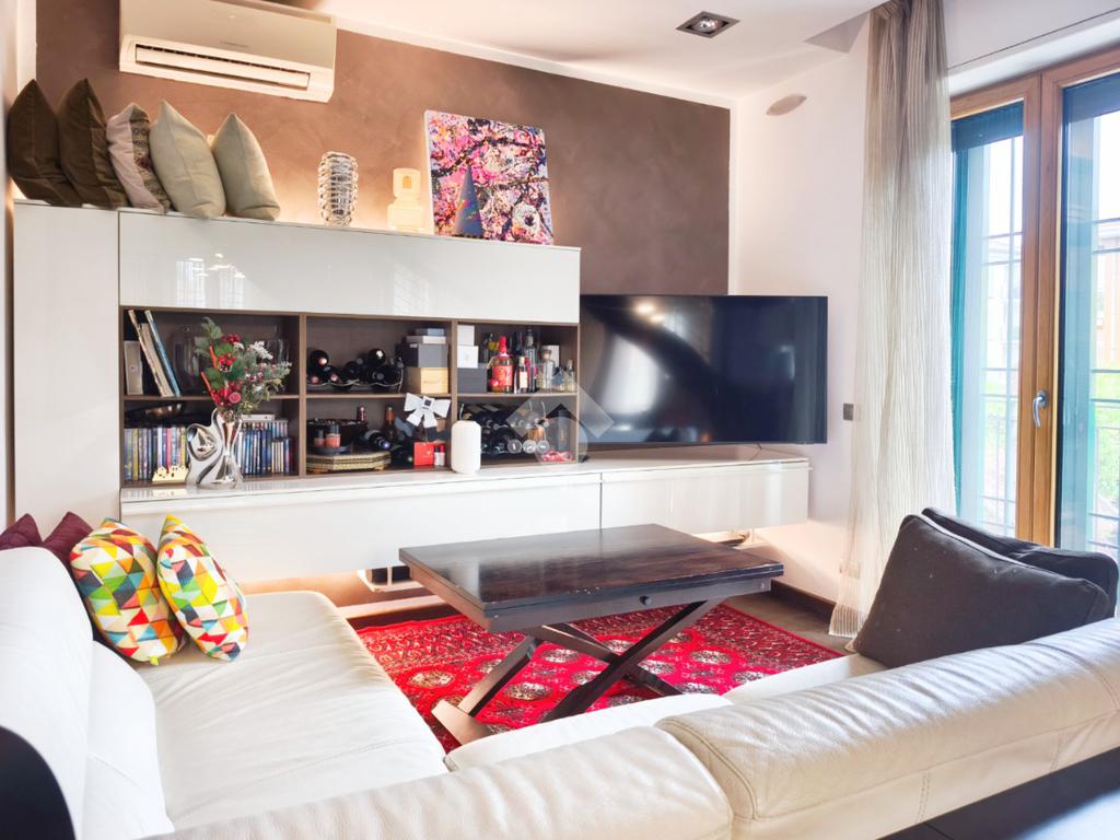 L'appartamento vanta dotazioni di altissima gamma: dal cappotto esterno che assicura un elevato isolamento termico, al riscaldamento a pavimento e all’aria condizionata canalizzata per un clima perfetto in ogni stagione. La tecnologia è integrata con la domotica, mentre la sostenibilità è garantita dall'impianto fotovoltaico e dai pannelli solari. Gli esterni sono curati da un impianto di irrigazione temporizzato e l'accesso è facilitato da un cancello d'ingresso automatico.