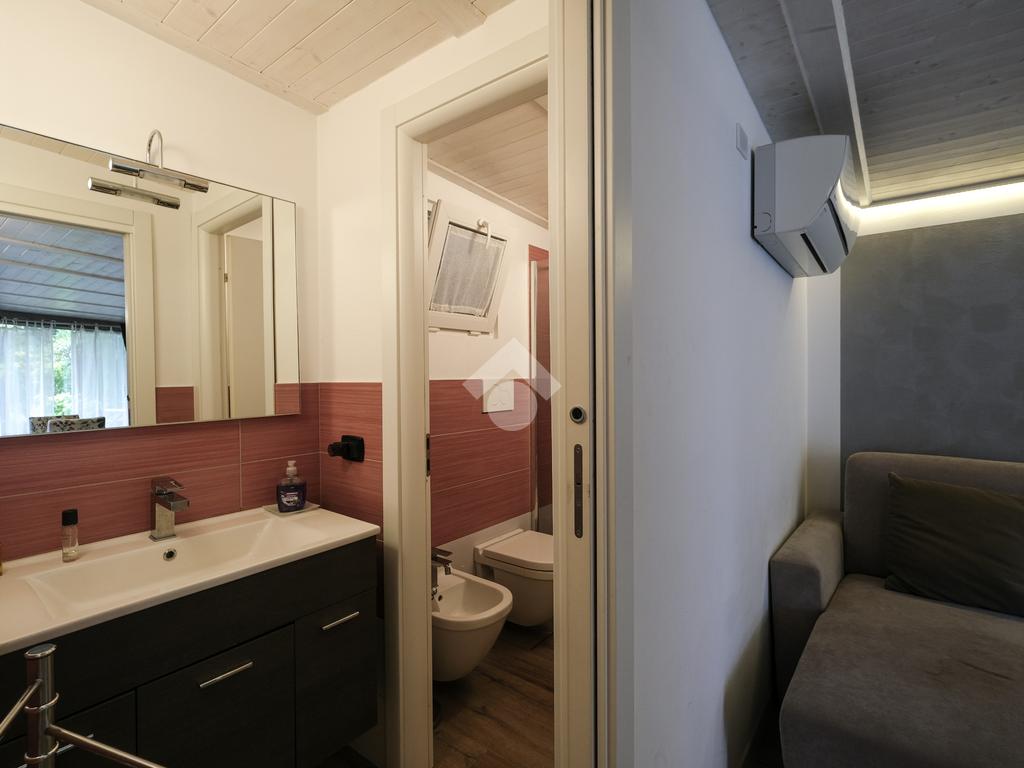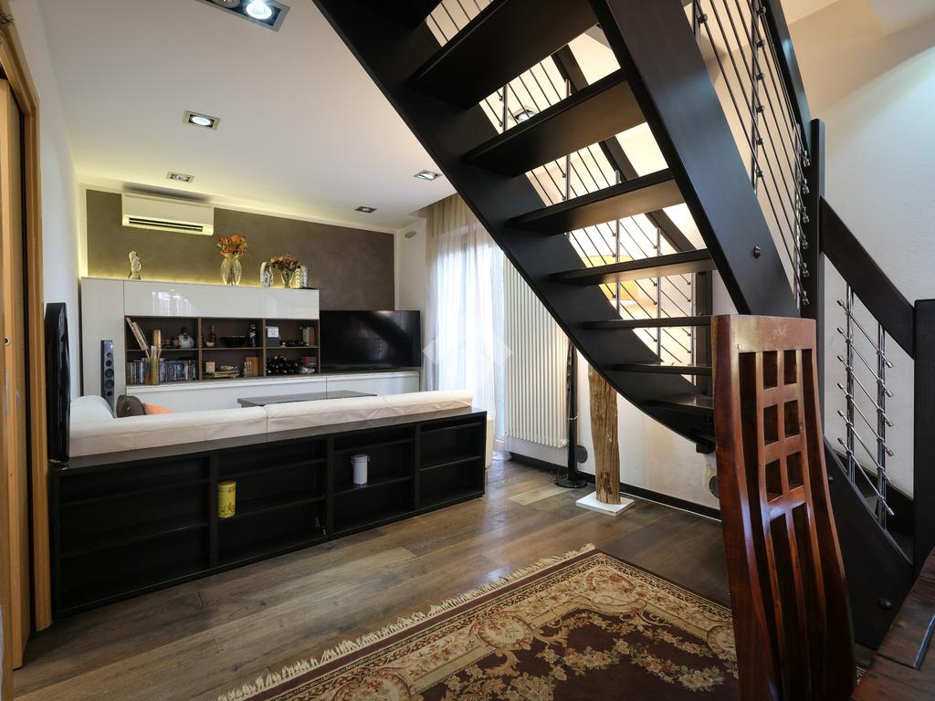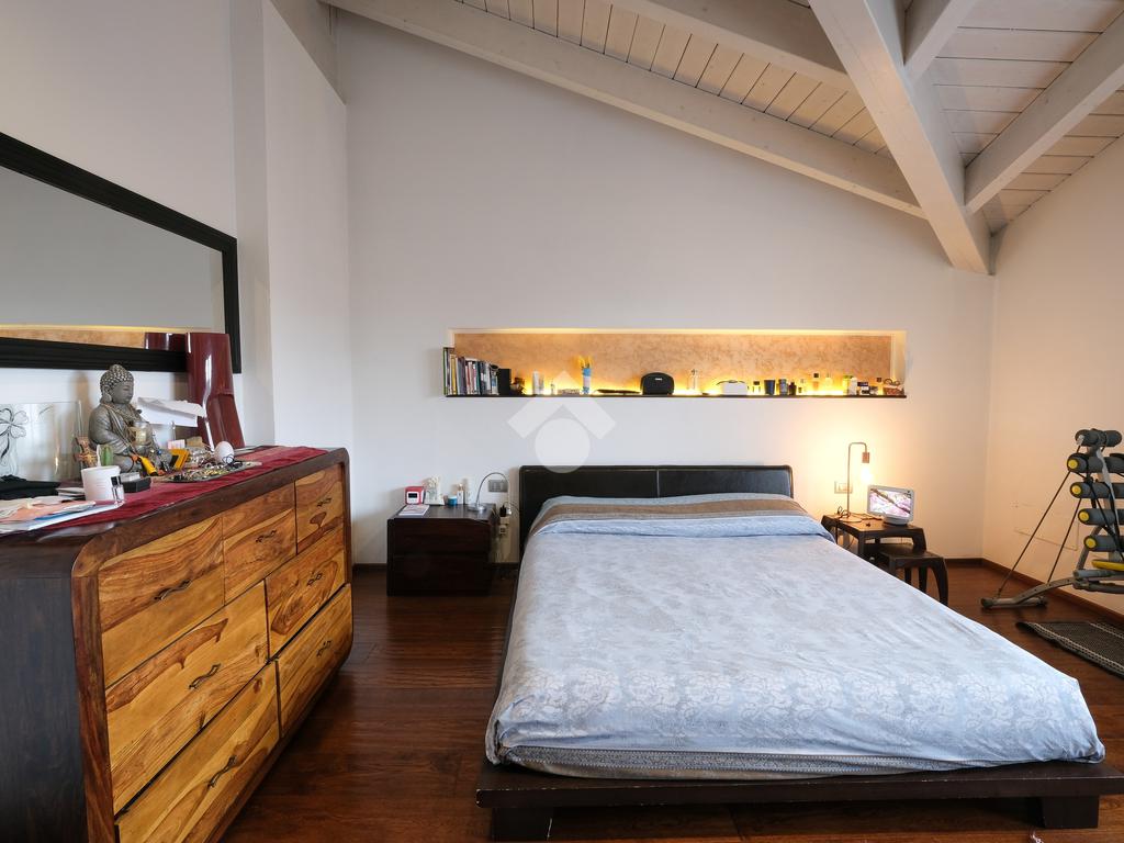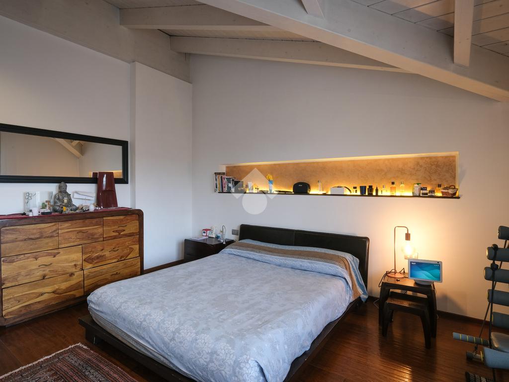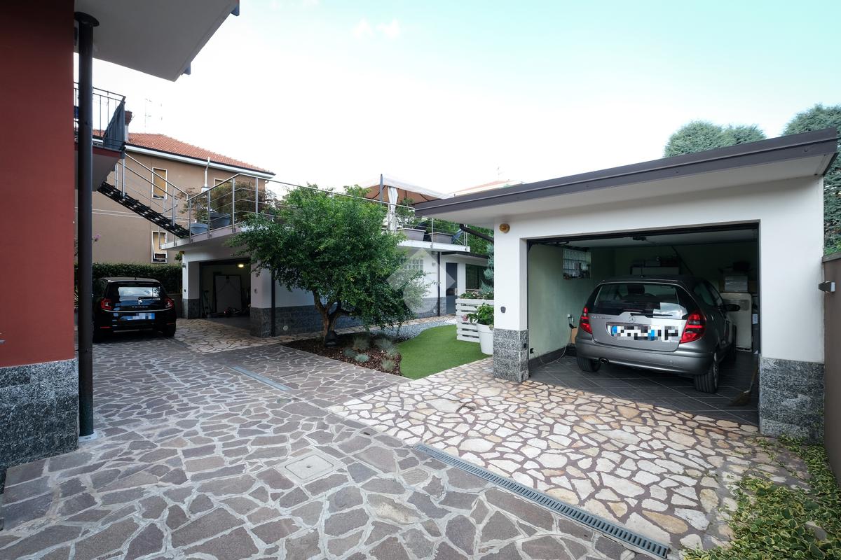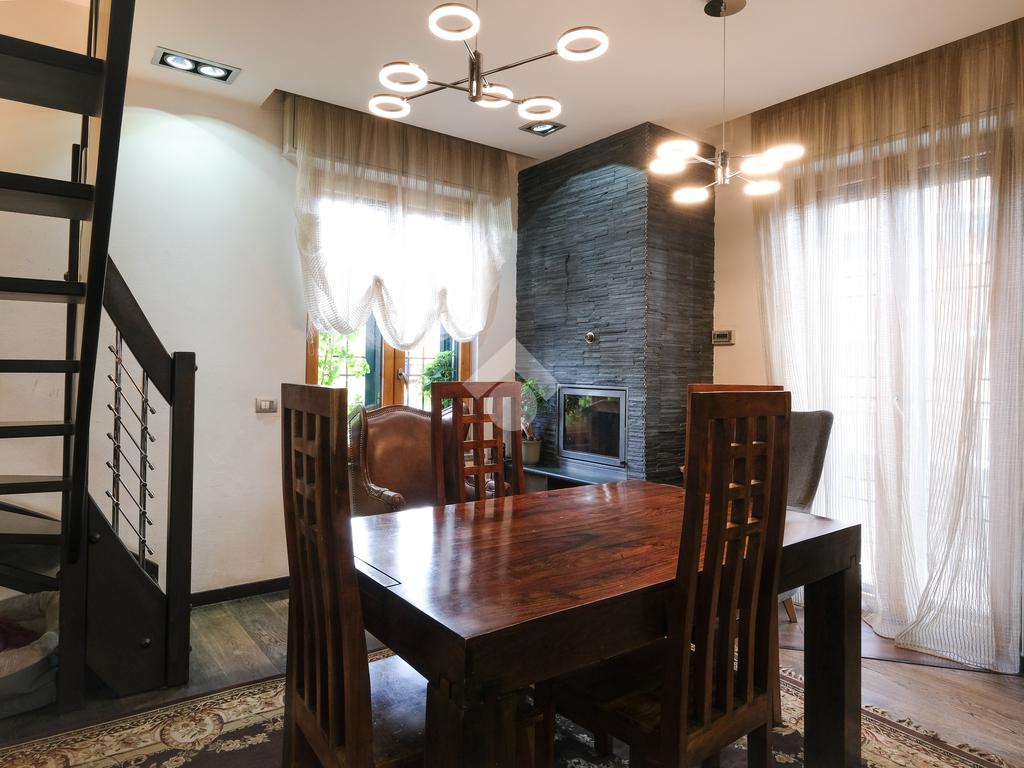 APPARTAMENTO DUE DUE LIVELLI: Il secondo appartamento si estende sui due ampi livelli superiori, offrendo spazi generosi e una scenografia interna di grande impatto. L'ingresso (al piano primo) conduce a un soggiorno doppio da cui una scenografica scala diventa elemento di design e connette elegantemente al piano superiore. La zona giorno è completata da una cucina abitabile, un bagno di servizio, uno studio e un ripostiglio. Salendo, la zona notte accoglie con un alto soffitto e suggestive travi a vista, tre camere da letto, inclusa una master suite con bagno privato riservato. Questo livello vanta anche un terzo bagno e un ampio locale finestrato adibito a lavanderia. Anche questa unità viene venduta completamente arredata con mobilio di altissimo livello. Ciò che rende questa villa unica è il livello di ristrutturazione esteso all'intero fabbricato. Entrambe le unità e l'involucro edilizio beneficiano di: cappotto esterno per un elevato isolamento termico; riscaldamento a pavimento e aria condizionata canalizzata per un clima perfetto in ogni stagione; impianto fotovoltaico e pannelli solari per un notevole risparmio energetico e sostenibilità; domotica per una gestione domestica moderna e semplificata; parquet di pregio che riveste elegantemente tutti gli ambienti interni. A completamento dell'offerta e per il massimo della comodità un box singolo (€ 20.000,00) ed un ampio box doppio (€ 50.000,00).