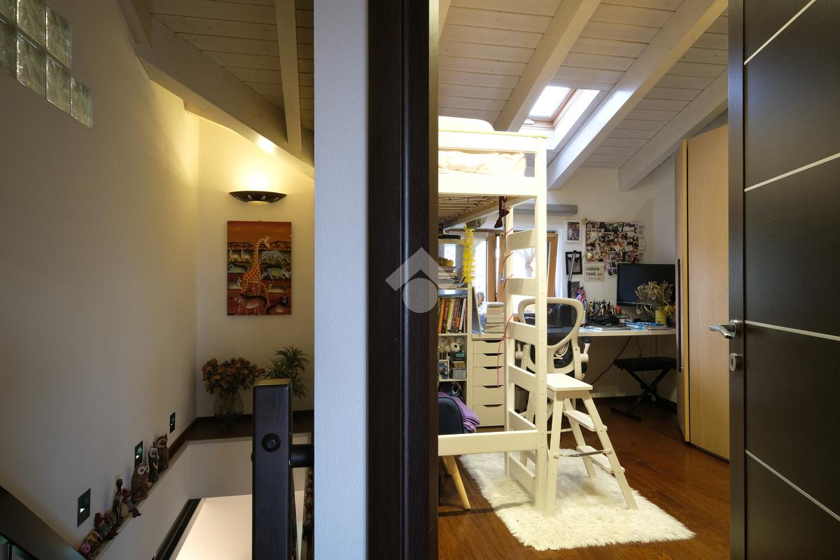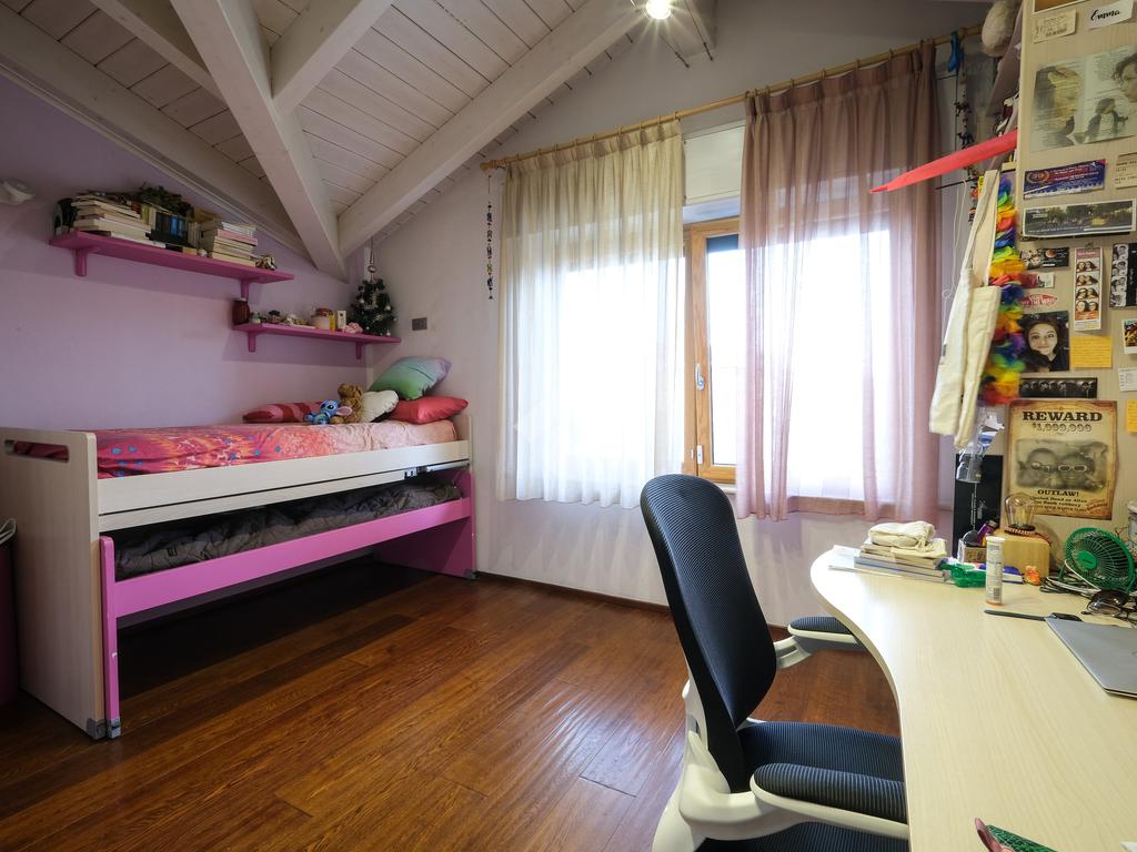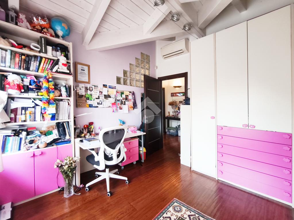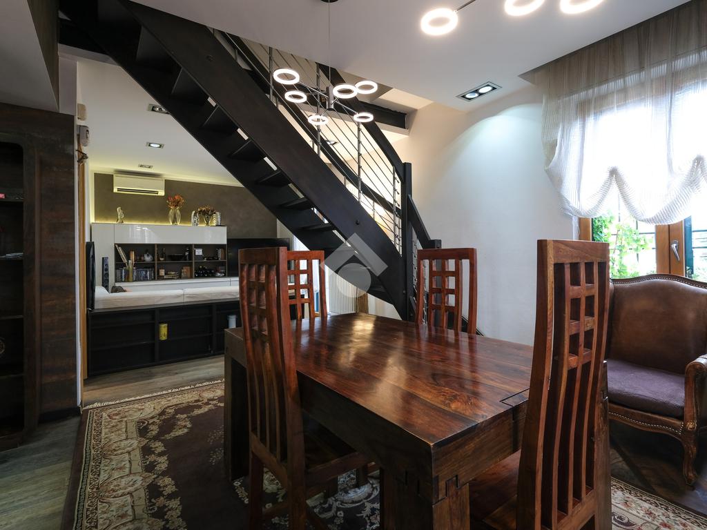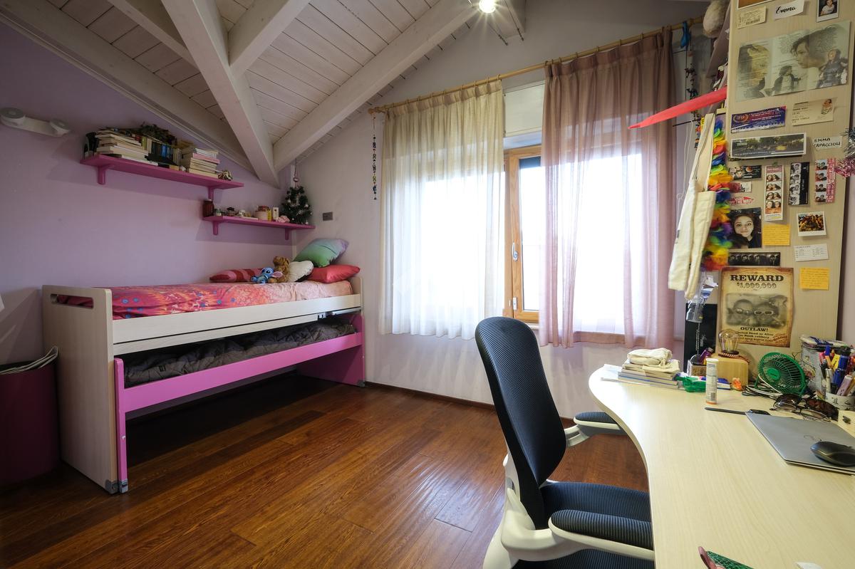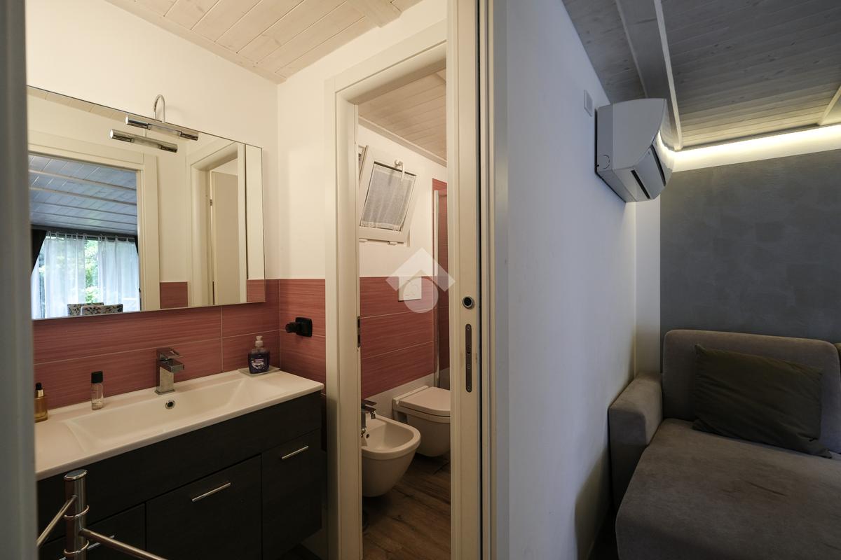 APPARTAMENTO DUE DUE LIVELLI: Il secondo appartamento si estende sui due ampi livelli superiori, offrendo spazi generosi e una scenografia interna di grande impatto. L'ingresso (al piano primo) conduce a un soggiorno doppio da cui una scenografica scala diventa elemento di design e connette elegantemente al piano superiore. La zona giorno è completata da una cucina abitabile, un bagno di servizio, uno studio e un ripostiglio. Salendo, la zona notte accoglie con un alto soffitto e suggestive travi a vista, tre camere da letto, inclusa una master suite con bagno privato riservato. Questo livello vanta anche un terzo bagno e un ampio locale finestrato adibito a lavanderia. Anche questa unità viene venduta completamente arredata con mobilio di altissimo livello. Ciò che rende questa villa unica è il livello di ristrutturazione esteso all'intero fabbricato. Entrambe le unità e l'involucro edilizio beneficiano di: cappotto esterno per un elevato isolamento termico; riscaldamento a pavimento e aria condizionata canalizzata per un clima perfetto in ogni stagione; impianto fotovoltaico e pannelli solari per un notevole risparmio energetico e sostenibilità; domotica per una gestione domestica moderna e semplificata; parquet di pregio che riveste elegantemente tutti gli ambienti interni. A completamento dell'offerta e per il massimo della comodità un box singolo (€ 20.000,00) ed un ampio box doppio (€ 50.000,00).