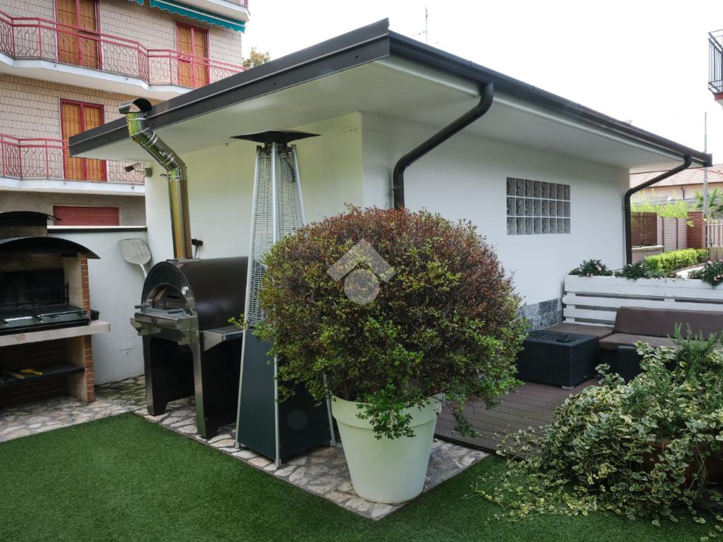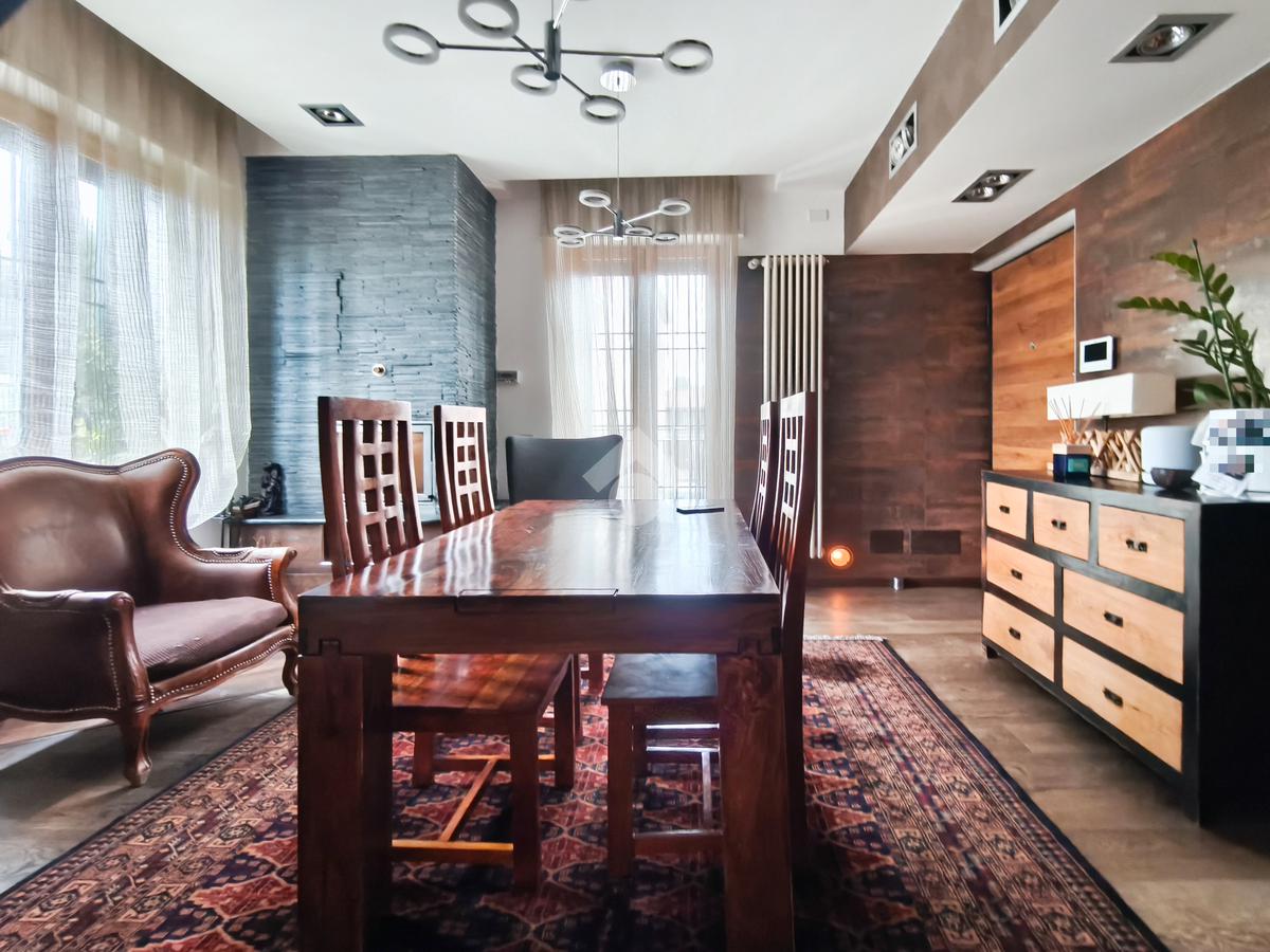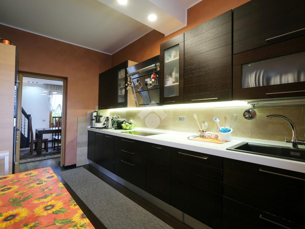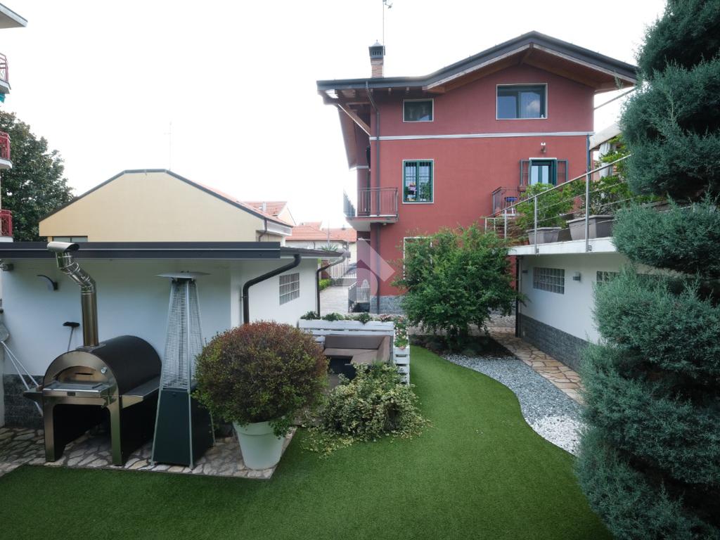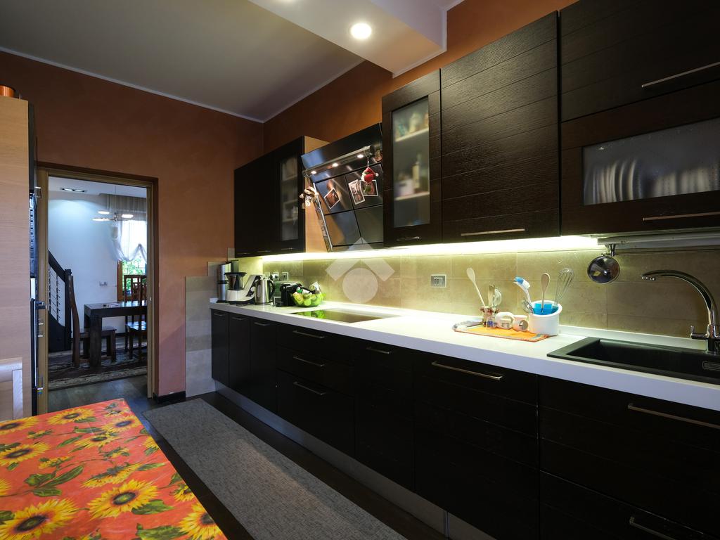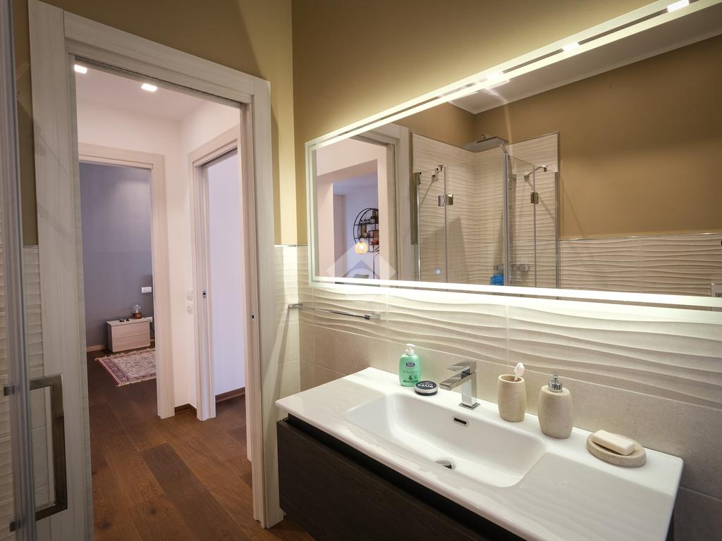 APPARTAMENTO DUE DUE LIVELLI: Il secondo appartamento si estende sui due ampi livelli superiori, offrendo spazi generosi e una scenografia interna di grande impatto. L'ingresso (al piano primo) conduce a un soggiorno doppio da cui una scenografica scala diventa elemento di design e connette elegantemente al piano superiore. La zona giorno è completata da una cucina abitabile, un bagno di servizio, uno studio e un ripostiglio. Salendo, la zona notte accoglie con un alto soffitto e suggestive travi a vista, tre camere da letto, inclusa una master suite con bagno privato riservato. Questo livello vanta anche un terzo bagno e un ampio locale finestrato adibito a lavanderia. Anche questa unità viene venduta completamente arredata con mobilio di altissimo livello. Ciò che rende questa villa unica è il livello di ristrutturazione esteso all'intero fabbricato. Entrambe le unità e l'involucro edilizio beneficiano di: cappotto esterno per un elevato isolamento termico; riscaldamento a pavimento e aria condizionata canalizzata per un clima perfetto in ogni stagione; impianto fotovoltaico e pannelli solari per un notevole risparmio energetico e sostenibilità; domotica per una gestione domestica moderna e semplificata; parquet di pregio che riveste elegantemente tutti gli ambienti interni. A completamento dell'offerta e per il massimo della comodità un box singolo (€ 20.000,00) ed un ampio box doppio (€ 50.000,00).