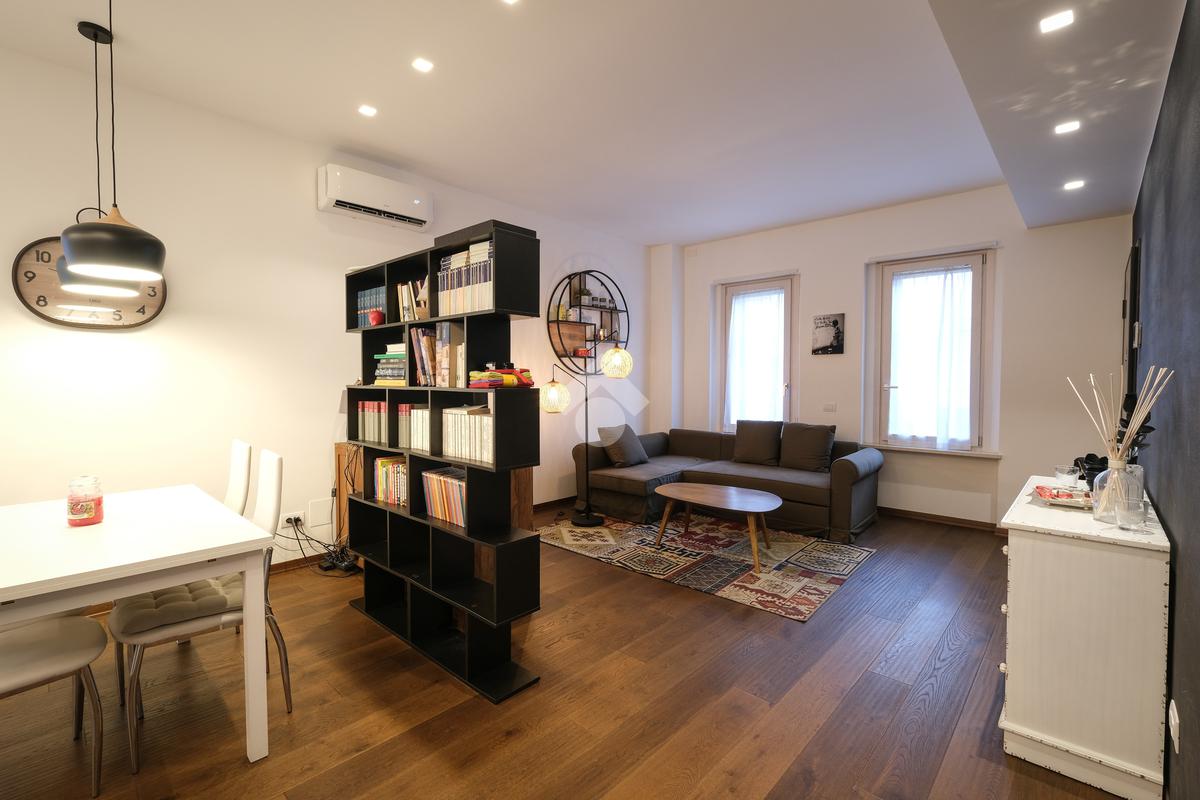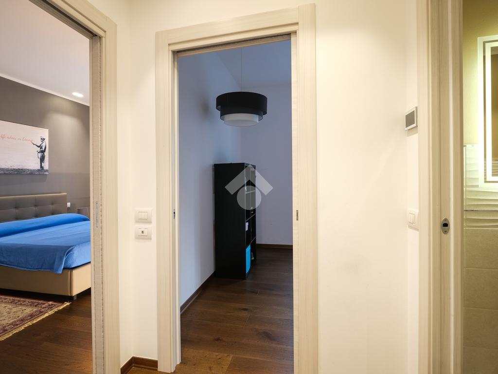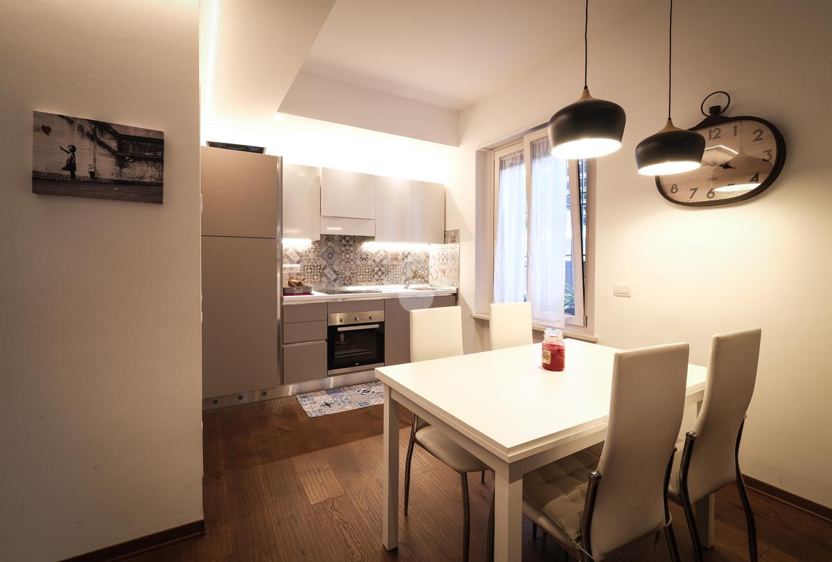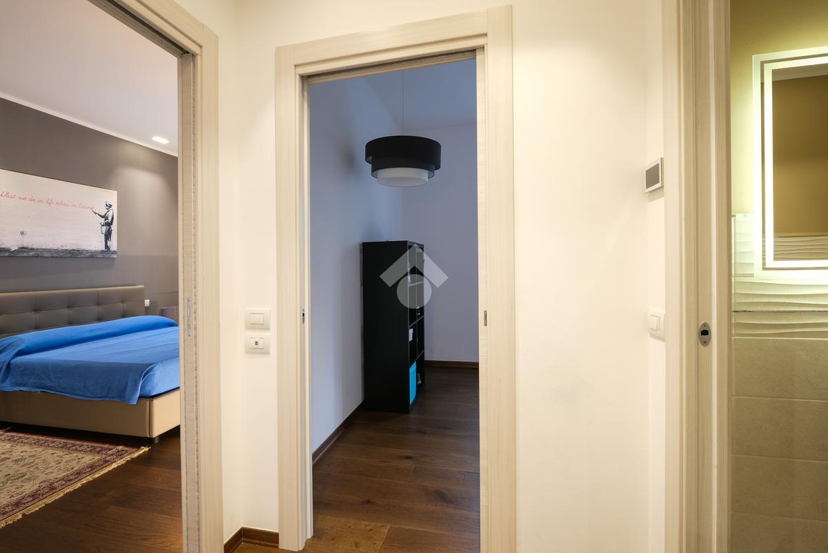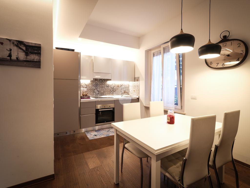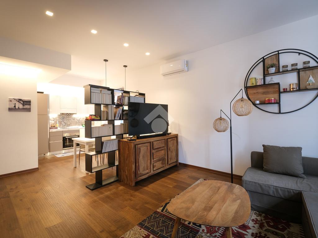 APPARTAMENTO AL PIANO RIALZATO: varcato l'ingresso, si viene accolti da un ampio soggiorno sapientemente integrato con la cucina a vista, un ambiente conviviale completato da un comodo ripostiglio. La zona notte, accessibile tramite un disimpegno, ospita due camere da letto e un bagno finestrato con doccia. L'intero arredo, di altissima qualità, è incluso nel prezzo di vendita.