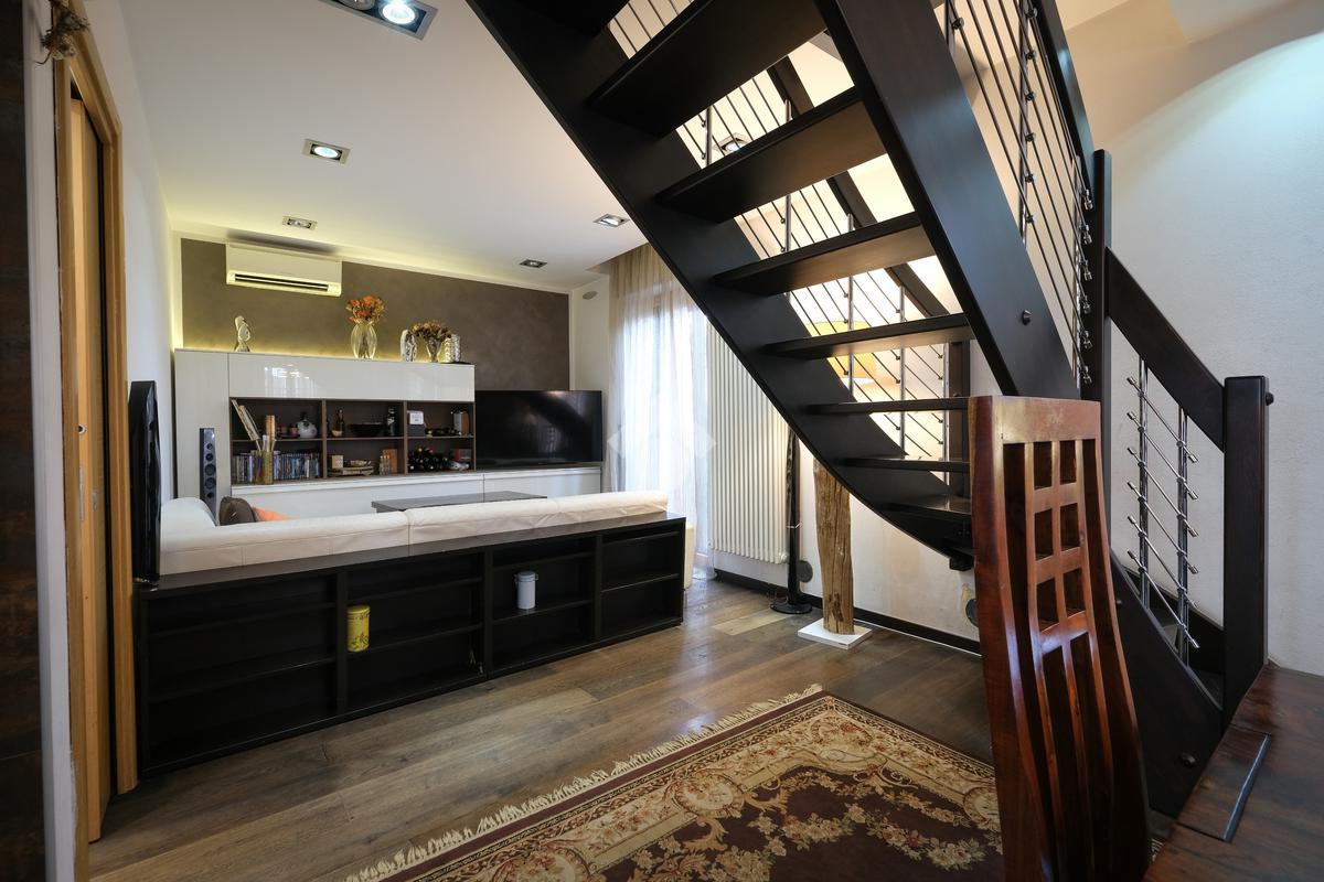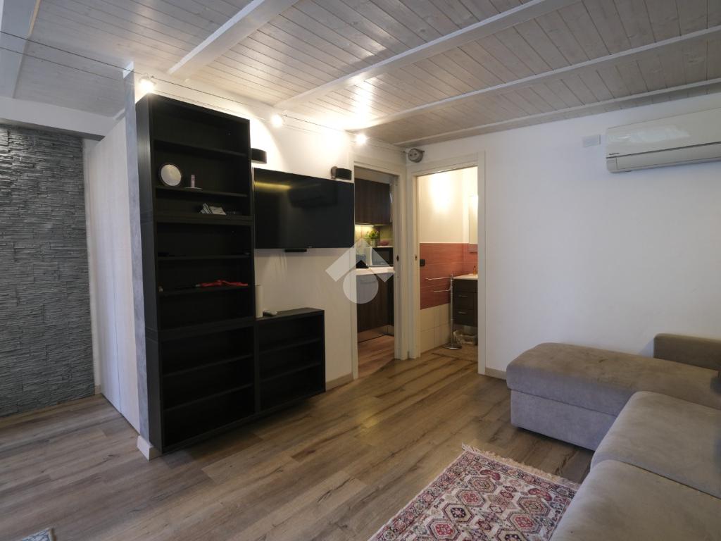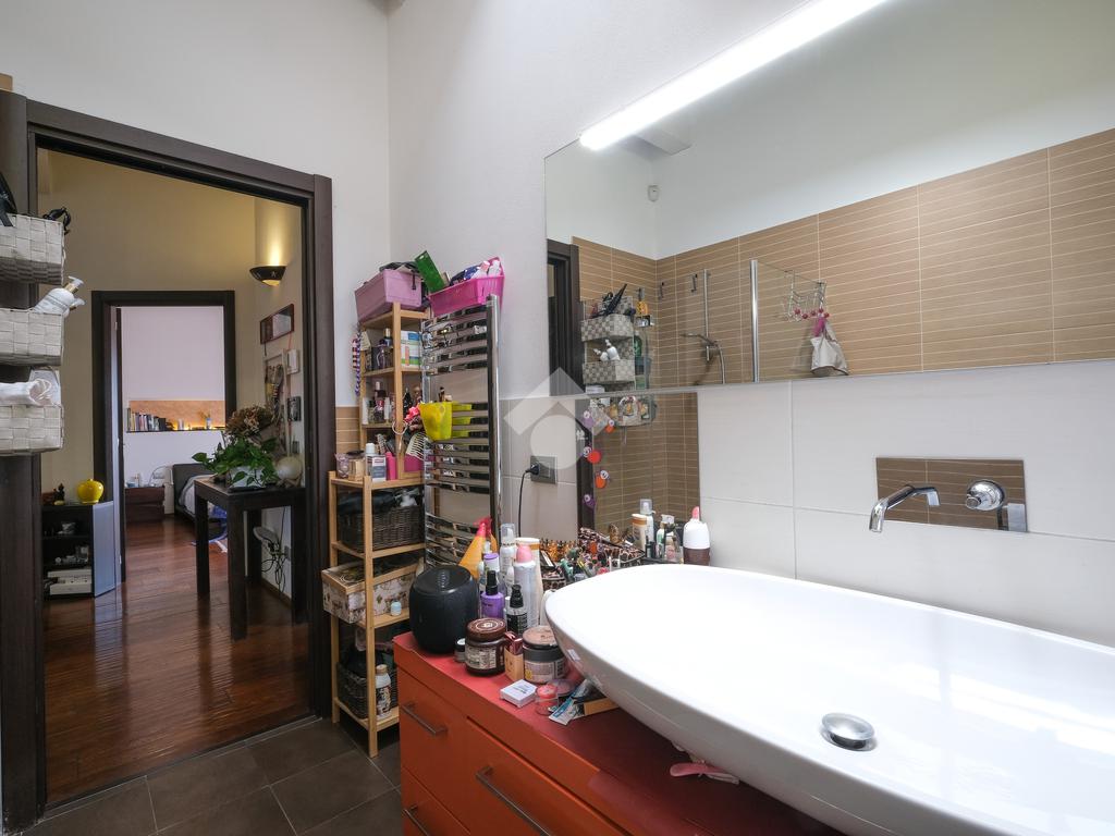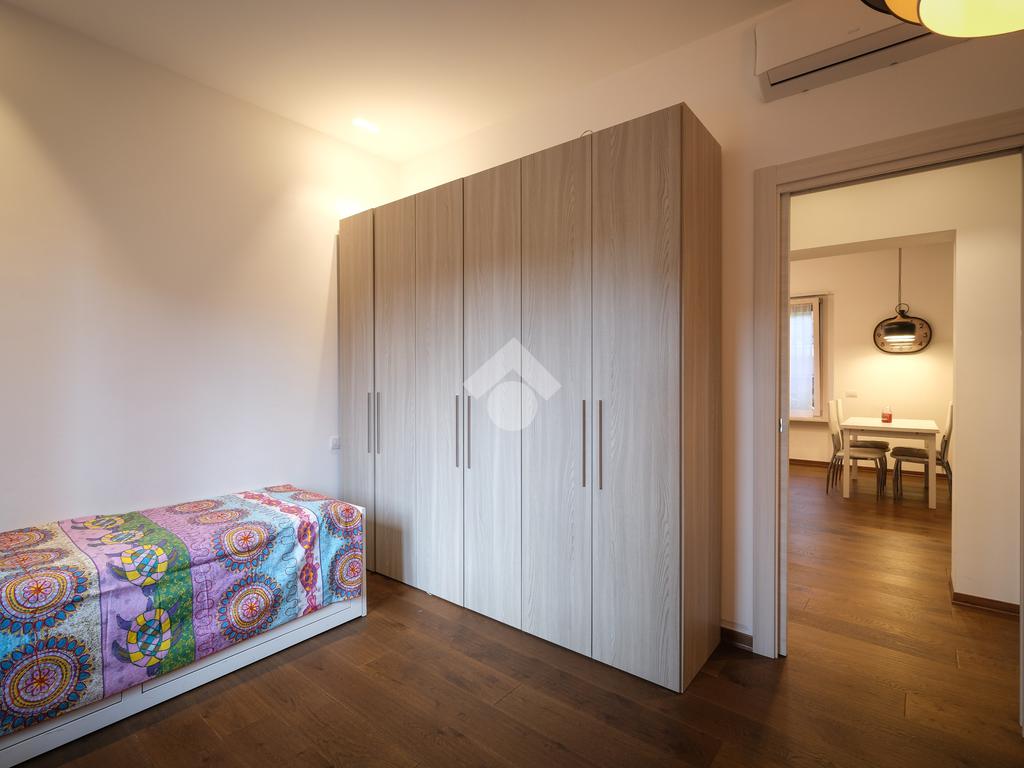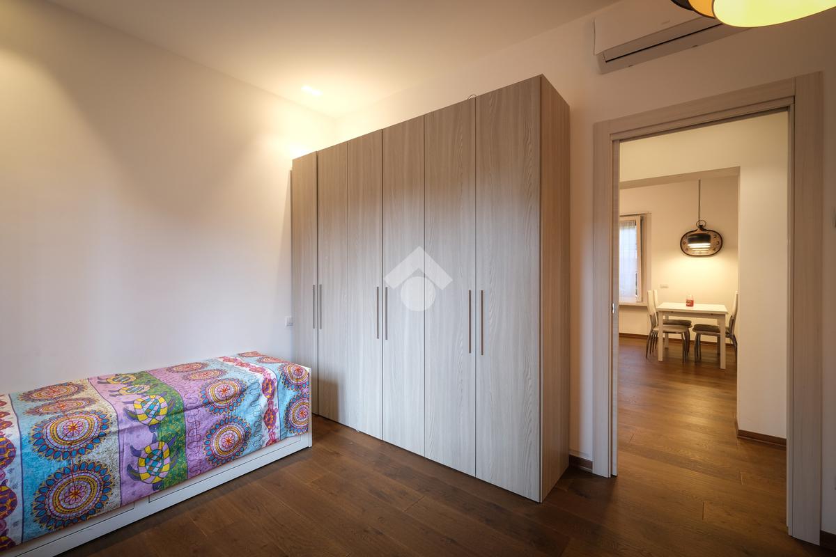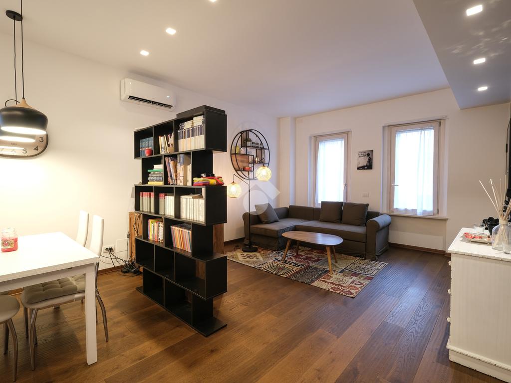 APPARTAMENTO AL PIANO RIALZATO: varcato l'ingresso, si viene accolti da un ampio soggiorno sapientemente integrato con la cucina a vista, un ambiente conviviale completato da un comodo ripostiglio. La zona notte, accessibile tramite un disimpegno, ospita due camere da letto e un bagno finestrato con doccia. L'intero arredo, di altissima qualità, è incluso nel prezzo di vendita.